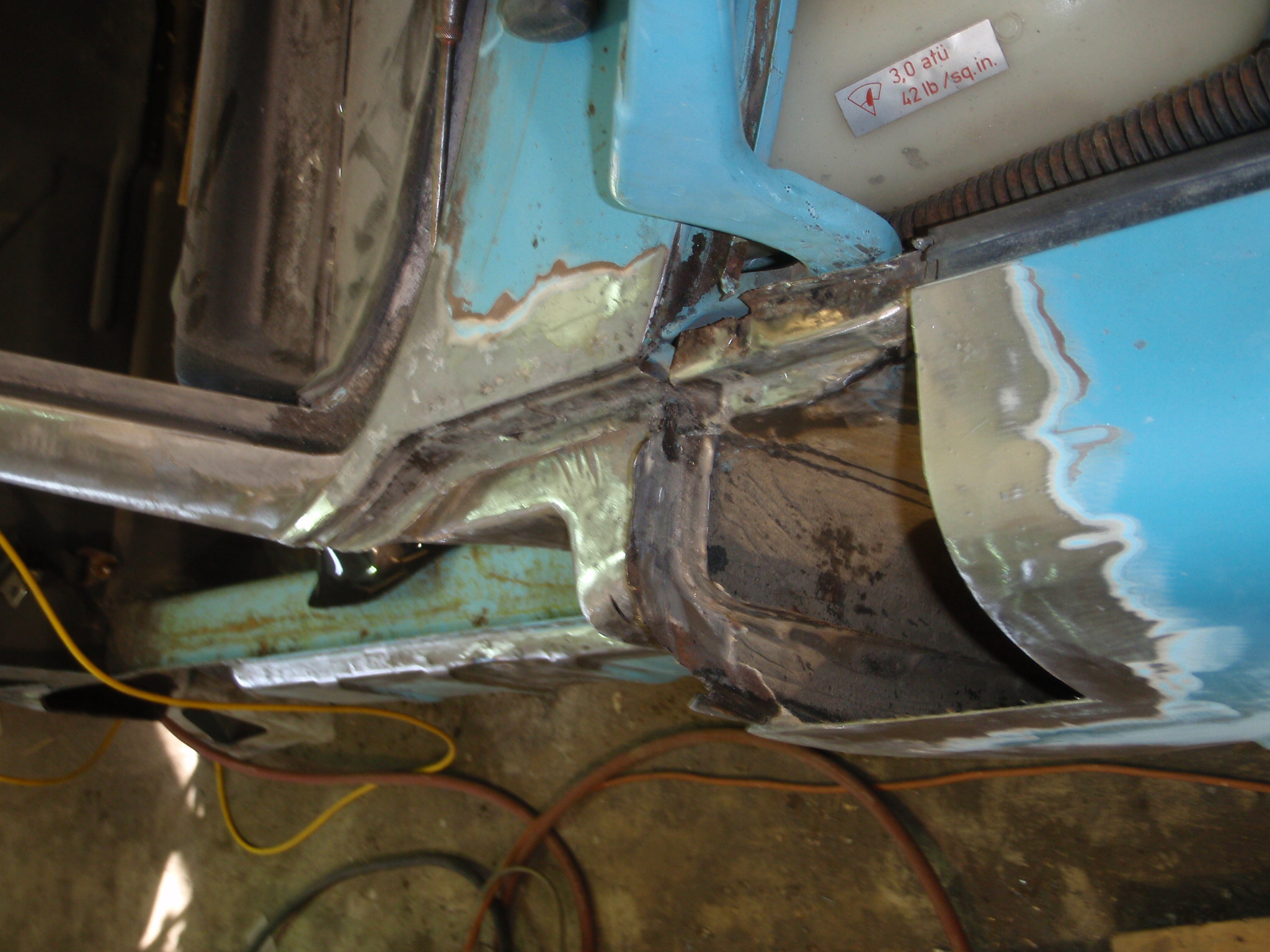 I knew this wasnt going to be a walk in the park, but as I plan on installing complete fiberglass front fenders I wasnt planning on dealing with the rust on the front fenders. I knew the longs and the hell hole would need work, but they all do, right? As far as how much I got it for, lets just say the front fenders will cost more than the car. If you are sneaky you can find some more pics in my photobucket, nothing is locked (IMG:style_emoticons/default/wink.gif) My concern is that you understand how to repair the structural parts. Fiberglass fenders will not fix what I'm worried about. Again, please don't mistake my words as negative or naysaying, but rather to please be aware of where your car is structurally weak and needs serious metal work. The first concern is the hell hole...... The area under the battery tray and forward as it has eaten into the very important structural part of your car that you haven't yet discovered how severe it really is. Please dig into this before starting the work on fenders. |
