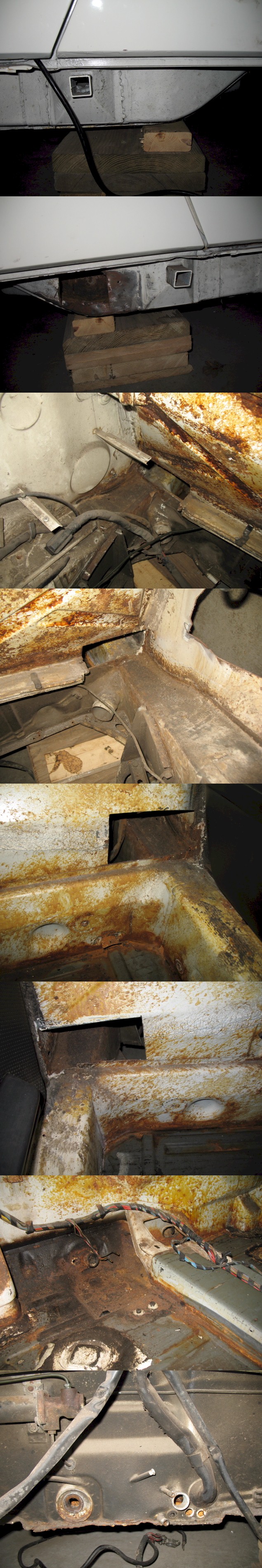 maybe the rust is isolated to the area closest to the jack points, if so, you'll be golden. once you can see all typical rusty areas better, let us know how your rust compares to the rust areas in pics attached. maybe you have a good budget but I would stick with 4x130 and go back to narrow on the rear. what is your budget? I assume you are good with a welder? may be near you? http://www.914world.com/bbs2/index.php?showtopic=111018 jim Attached thumbnail(s) |