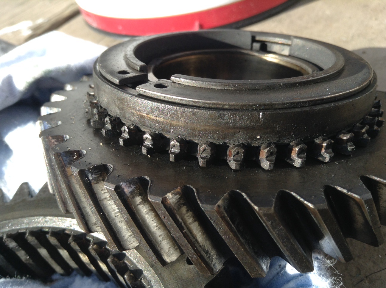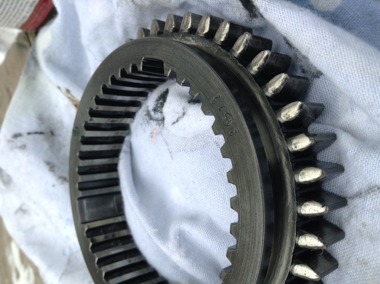 Ok so George,Thepaintedman, inspired me to tear into my transmission. The pictures show what I found, looks like I need a new first gear slider and dog teeth??? Are the parts I need going to be the same out of a side shifted transmission?