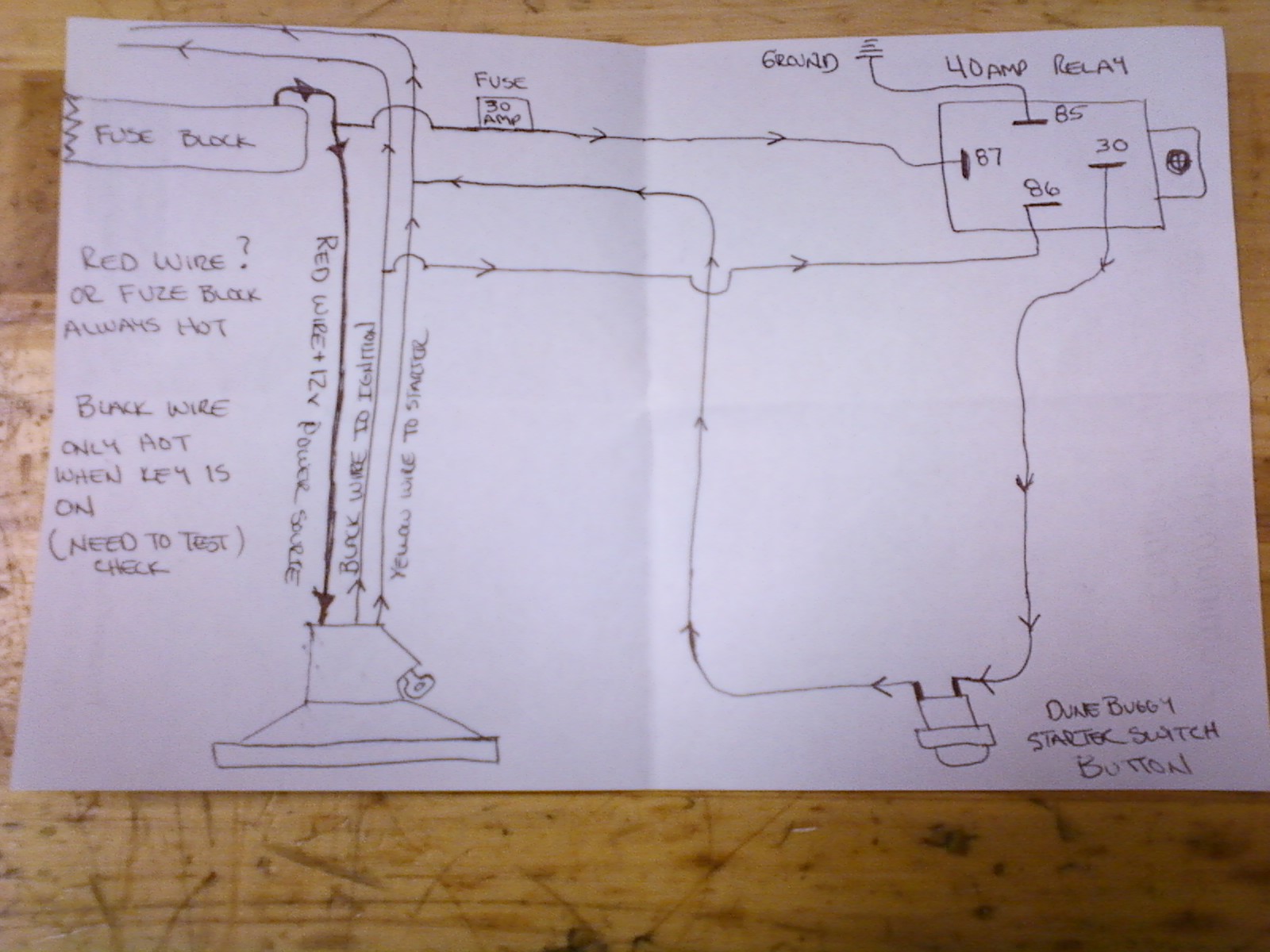 Does the yellow wire going to the original ignition switch require a diode to protect it when the button start is used ? I didn't put one in my setup ,I don't see a need for it , the yellow wire coming out of the switch goes to the starter solenoid , the key switch will still operate the starter ( if it's still good/ working properly) you have the added benefit of the button ( which I prefer to use / it takes a load off of the secondary part of the key switch, which is the part I think goes bad ) maybe I'm wrong about the diode , but I haven't had a problem so far . Bill D. |
