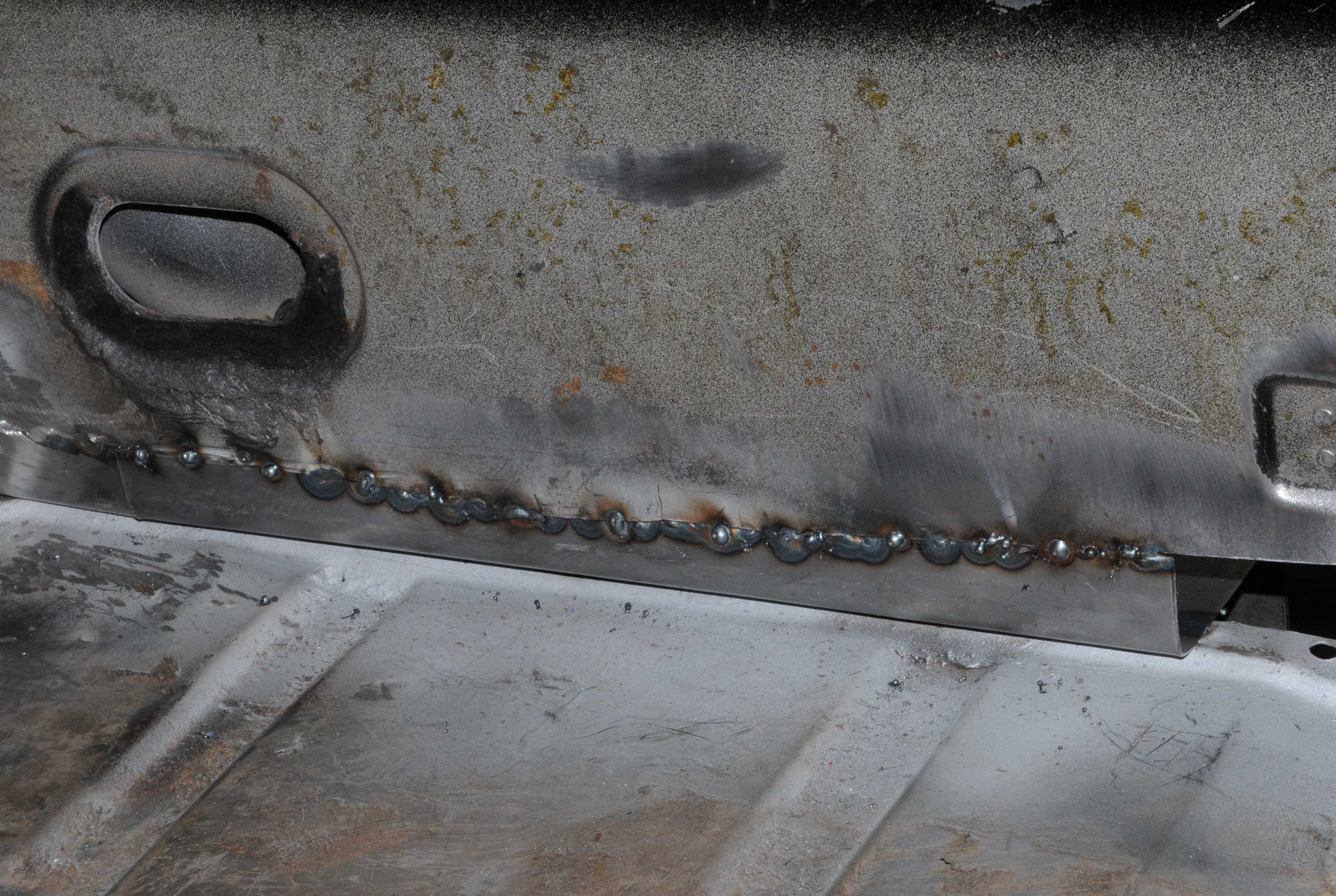 Also, word of advice to future me: Weld the long from inside the car and not inside the long under the front heater tube. You can't grind behind that pipe. Actually, just get a better paying job and just buy that whole piece from RD instead of making your fancy little patch panels.