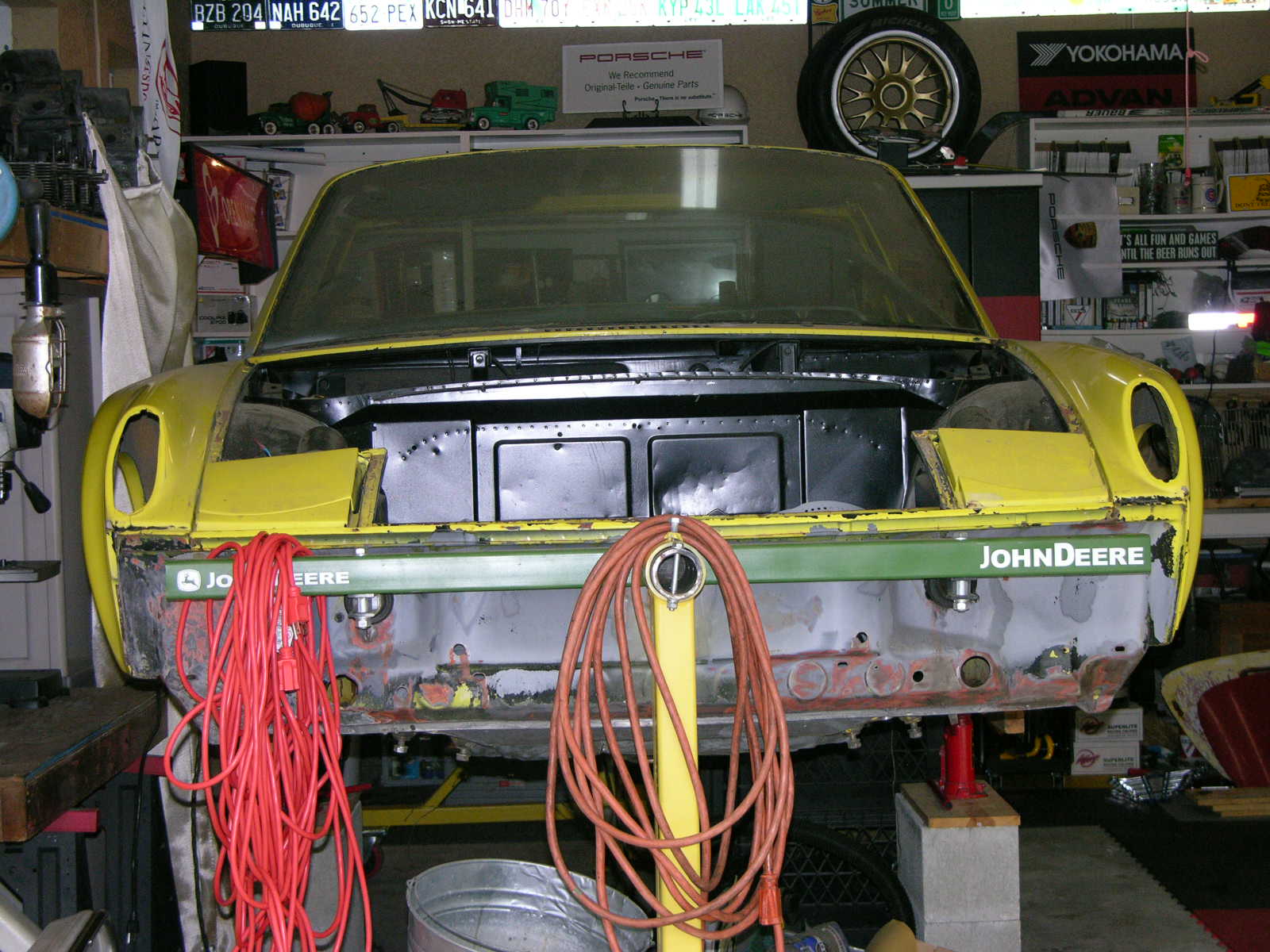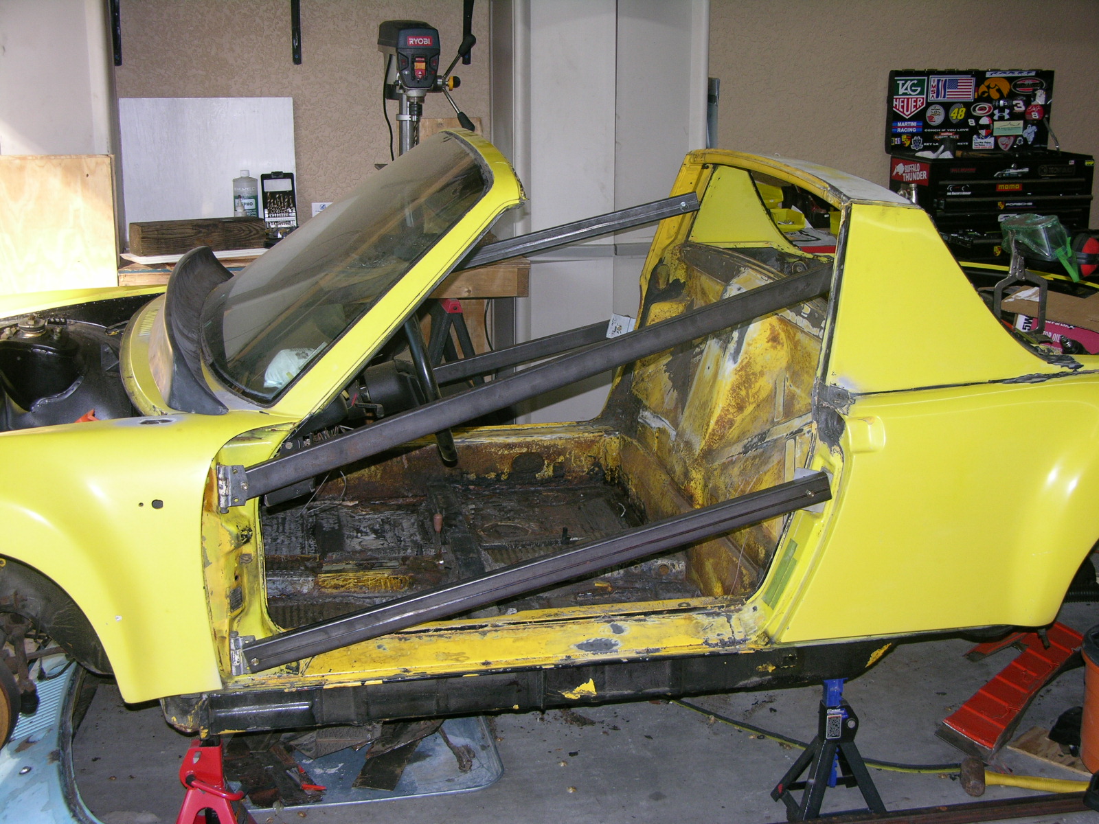 I bought this chassis several years ago and have been cutting out sections with rust. This roller was a 1976 with Fiberglas Flares, I like them. There is much work to be done. My 5 Major Project Points are: 1) Repair & Replace all rusted areas and weld in; * - New Floor Pans. *- Repairs to the Hell Hole area. *- Engman Kit. *- Weltmeister Chassis Stiffening Kit. *- McMark's Roll Bar. 2) Install Patrick Six Engine Mount, Install Engine, Have Transmission Rebuilt, Install Patrick Oil Tank and all Lines necessary, Install Oil Cooler, Rewire complete car. Replace and treat inside of Gas Tank, install new CF/ Fuel Lines. 3) Replace Doors, Windshield, Install Spartan Street/DE Interior, Sparco Vintage Seats, New Console, MoMo Wheel. 4) Prep car for Paint, all panels prepped, Hood, Trunk, Doors, Targa Top. 5) Replace & Upgrade all Suspension, Brakes, Bushings, Wheels & Tires. ![]() ![]() ![]() ![]() ![]() |