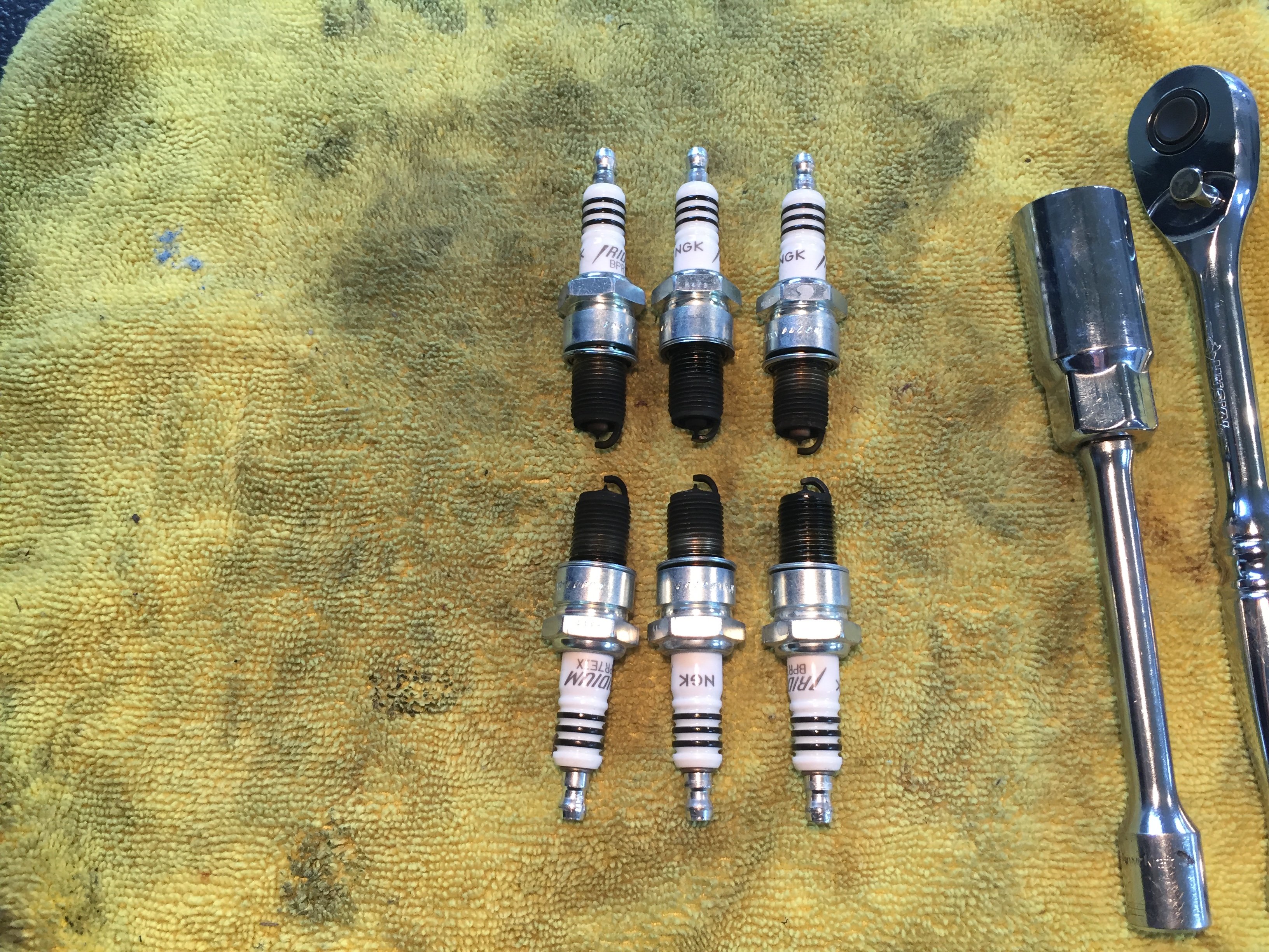 hi - quick question from the garage. cdi box died on my six. got replacement and car starts right up (good). but runs like crapola right away. pulled the plugs and on two the electrode (term?) is no touching the plug.