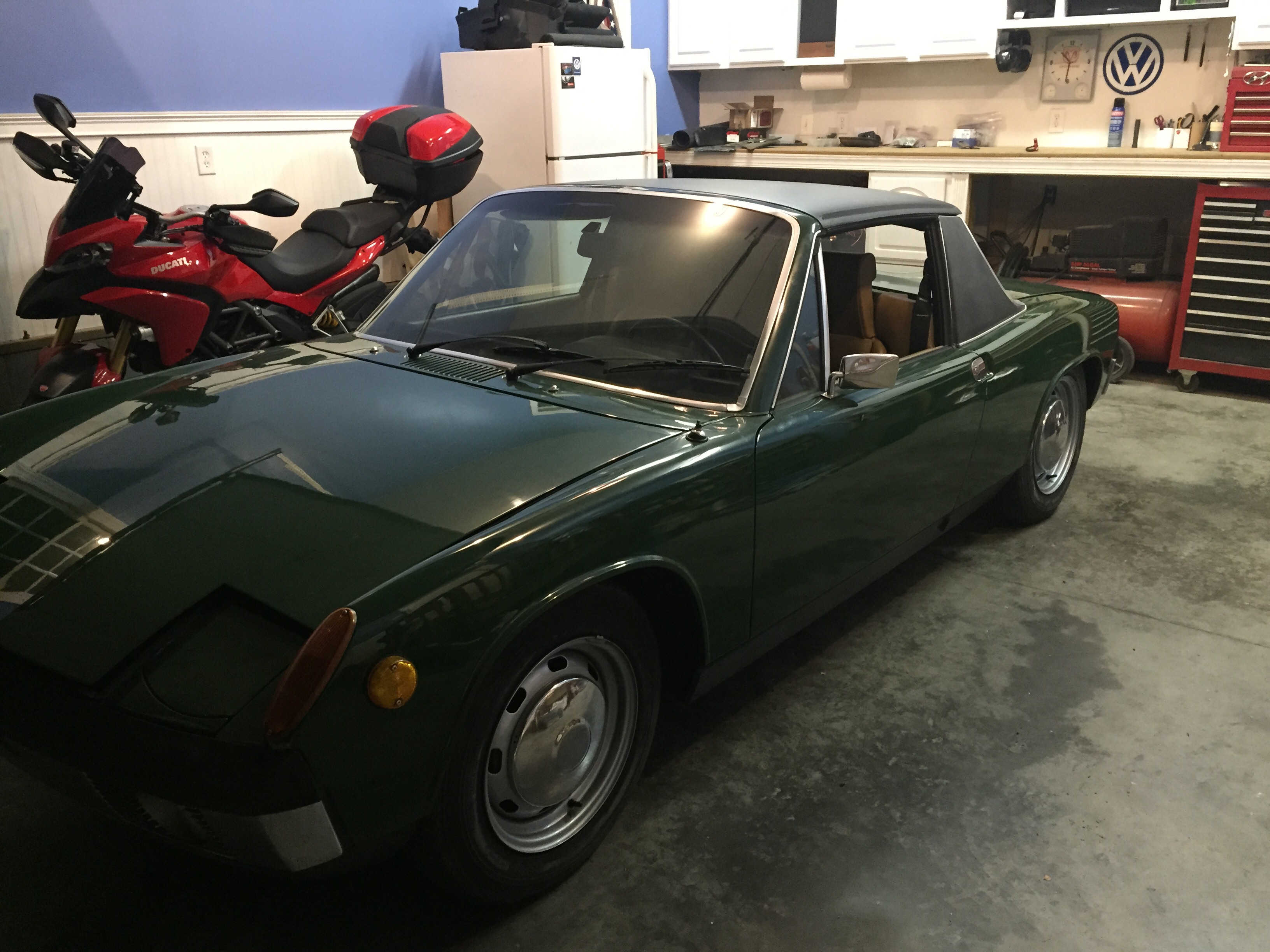 I met a guy at a local Air Cooled VW Club meeting a few years back. He was an older guy who said he had a 914 in his garage and had never drove it. He asked for my contact info and if I ever worked on them. 2 years later I get a call from him asking if I could come look at the car. I grabbed a buddy and we headed over. When we arrived we saw several cars under tarps and I thought this thing was going to need a lot of work being an East Coast car. We we to a garage out back and there it was.... A 1972 local owned, zero rust car. He bought it from an estate sale 8 years ago. After chatting a bit I discovered he wanted to sell the car. After a little negotiating with house CEO and the pending Sale of my Mini S, I now own another 914. It felt like something out of American Pickers and I'm honored to have been able to buy this car. It has a re-spray but is very original with owners manual and tool pouch. I hope to bond with it this weekend and get it going. Any feedback or comments are appreciated.