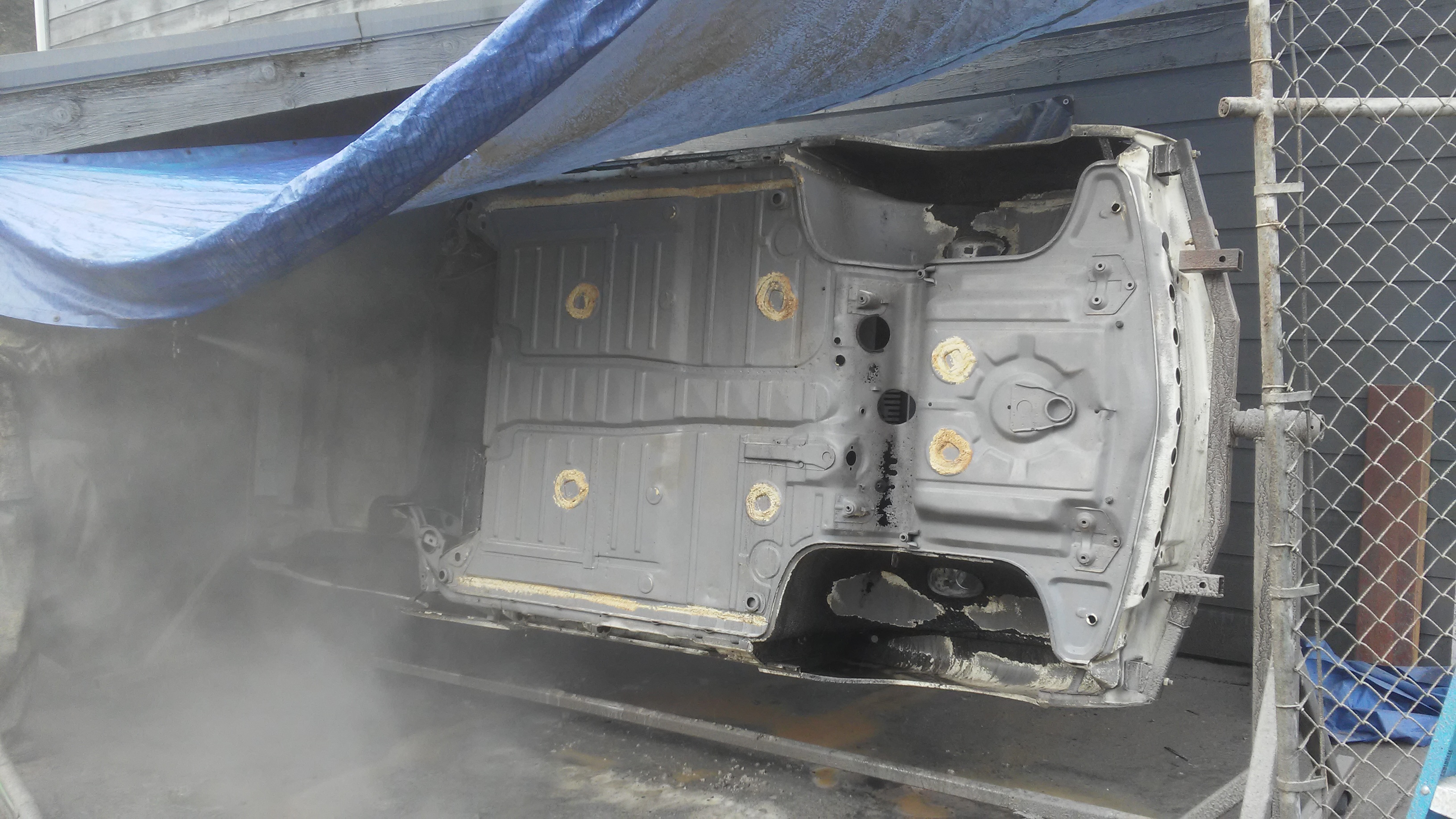Yes pretty much gone. Need to buy / build a rotisserie so we can media blast it. Looks like it's the bulkhead only. We need to blast the area under the tank to make sure there's not more down there.