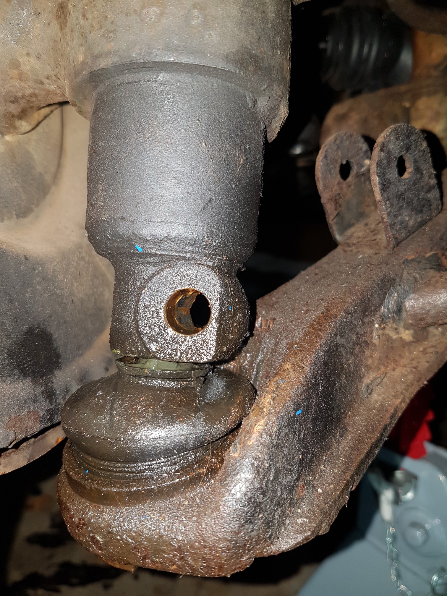 I am trying to change my ball joints (73) which have rotted (rubber is cracked) Decided to buy the tool for the ball joint nut (Sir tool 4 pronged). 1. First off I've removed the cinch bolt from the base of the shock absorber but the ball joint pin seems firmly attached inside the base of the shock absorber/strut. Can I heat that area to try and loosen it or does that risk damage to the shock/strut? 2. Is a pickle fork safe to use here, I'm concerned about damaging the control arm (not concerned about the ball jt as its going in the bin) 3. Is an impact driver best to remove the old balljoint nut (using the 4 pronged socket) or can you use a breaker bar? Same question for torquing up the new one. Wondered if people have used a thick walled ext bar on their breaker bar for more leverage? 4. Finally I've started this with the top hat and brake caliper still attached. Should I have removed these first? |