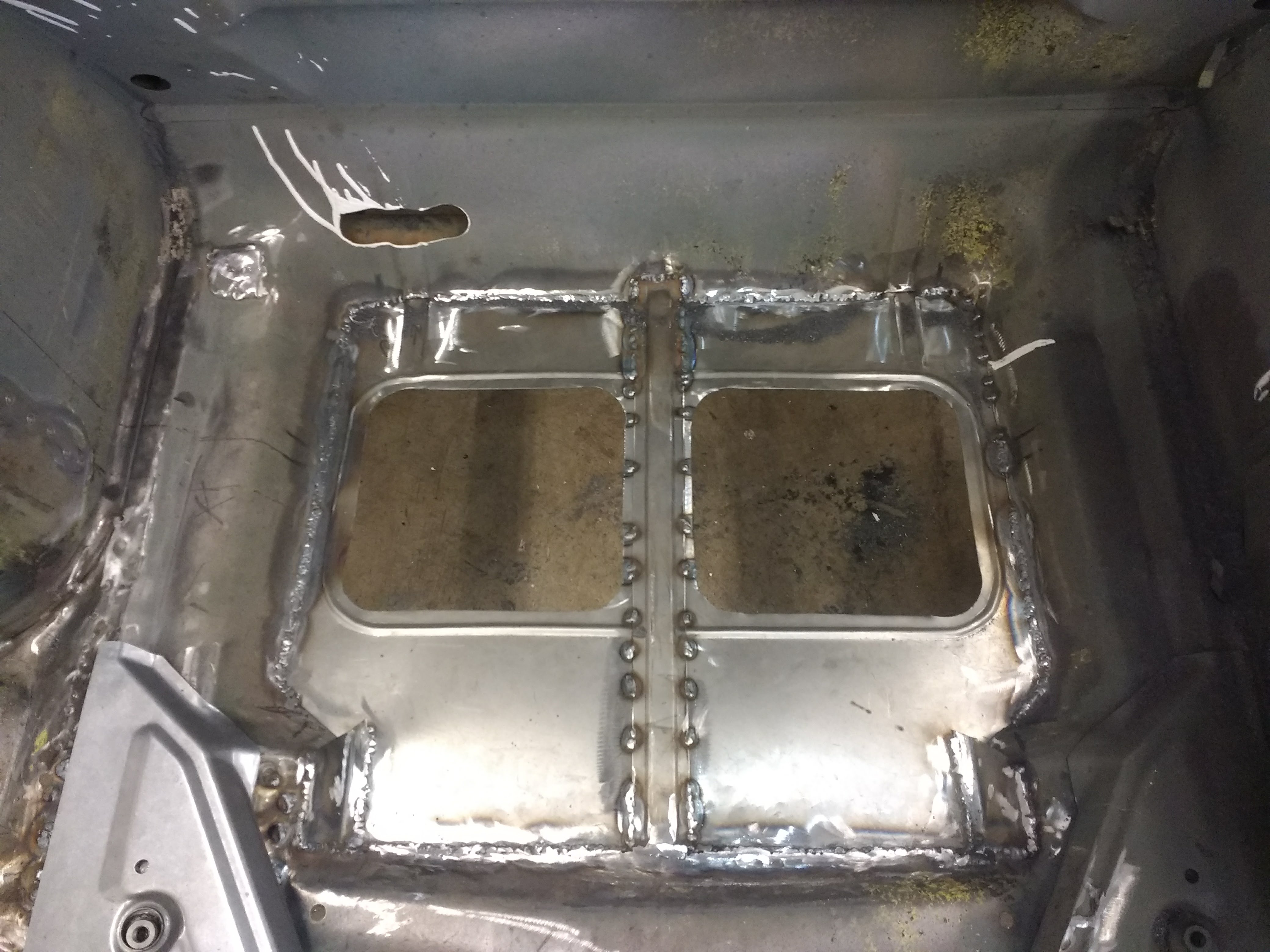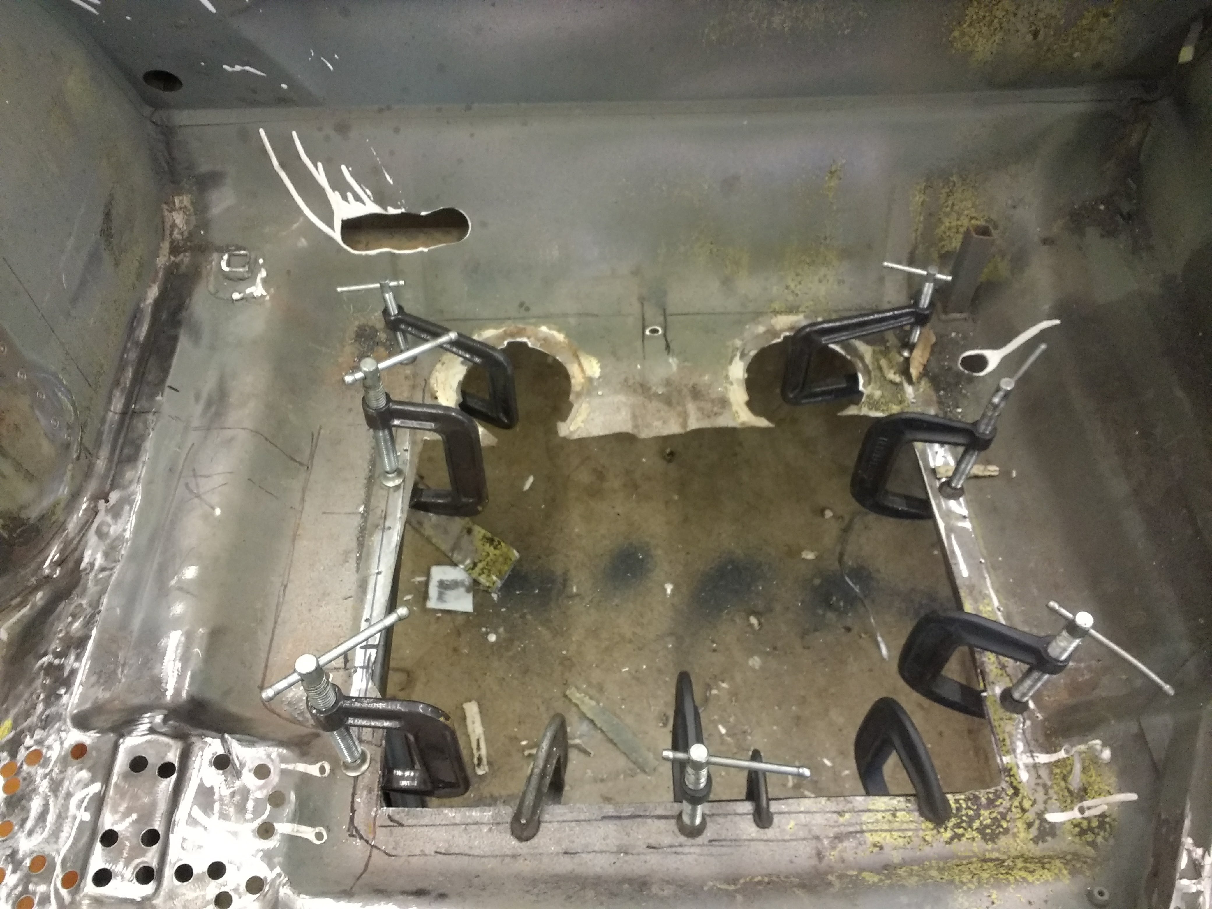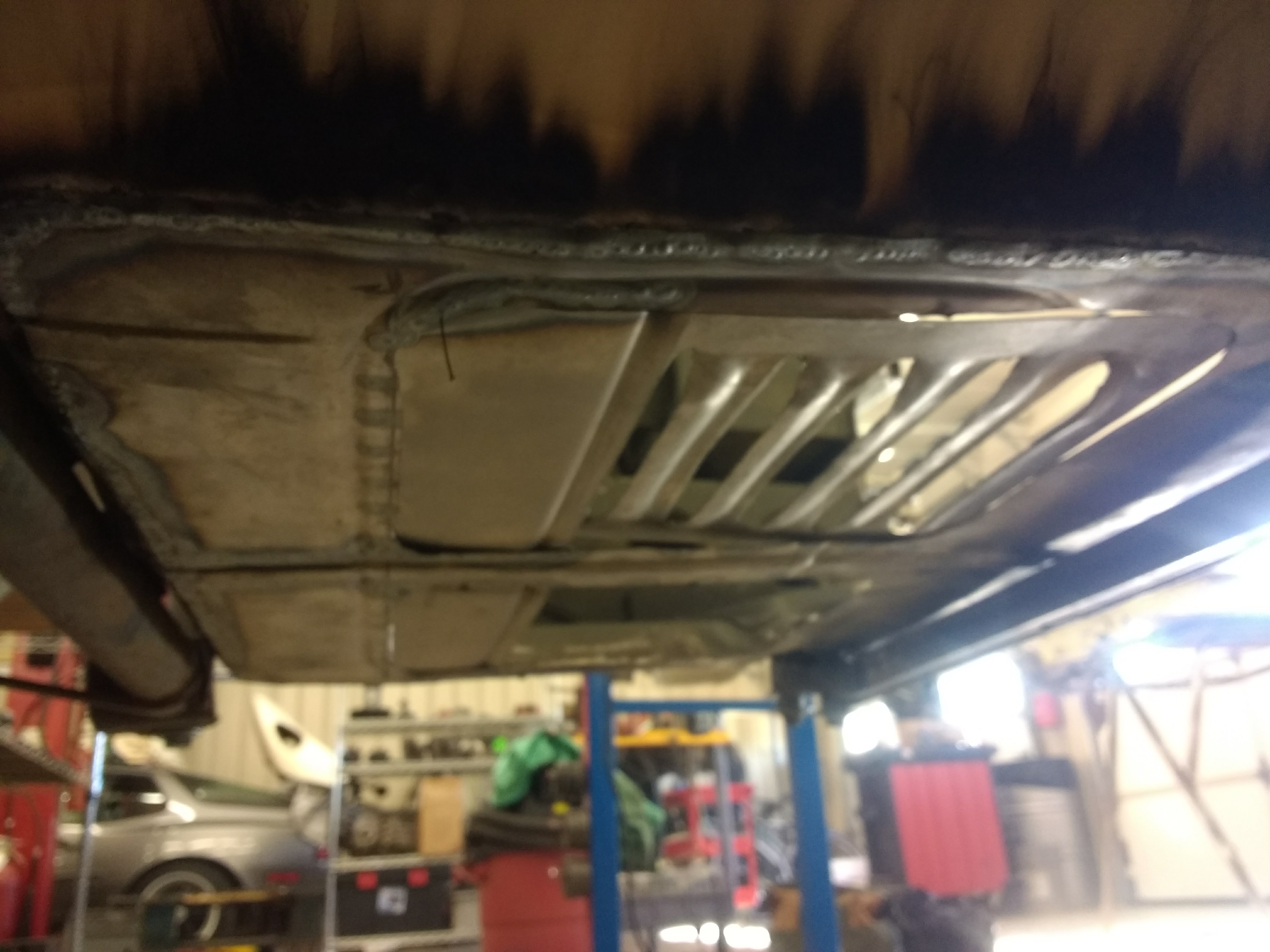 Once I had the chassis back in the shop with paint removed from the underside, both trunks and the engine bay I began to see some troubles;