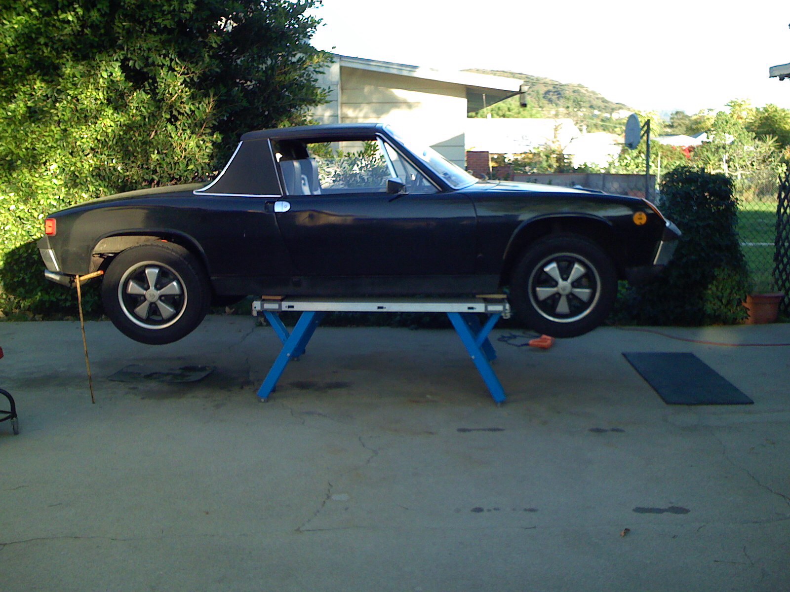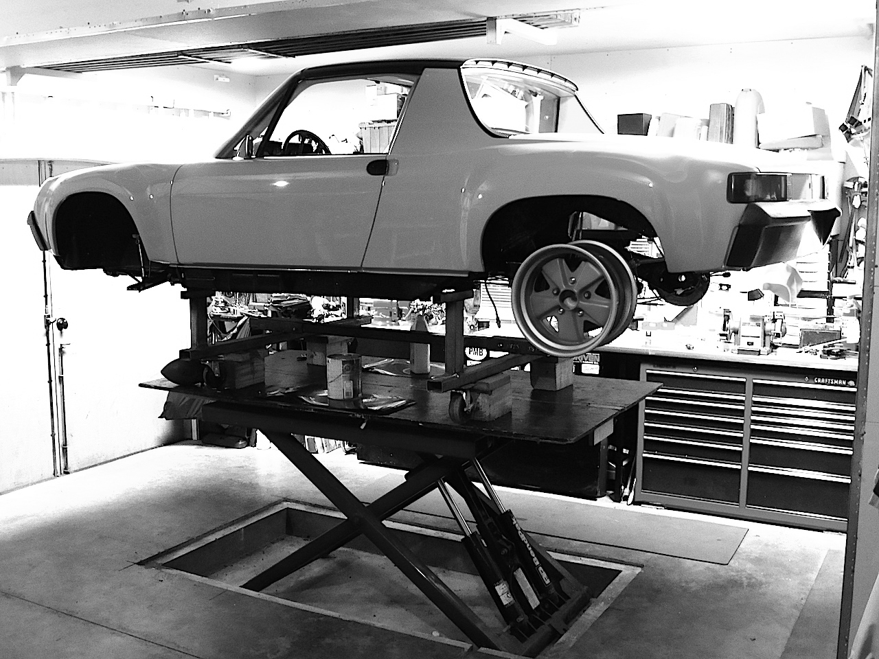 Elliot Cannon, what brand of lift is that Nice deck chair mod :-) BPic, how wide is your garage? Wondering if that setup might work in mine? My garage isn't exactly a garage. It's actually an enclosed car port. The floor is 17x17.5 feet and the ceiling is only 7 feet high. The ceiling is so low that to raise the car, sometimes the car must be positioned so that the windshield and the targa bar fit between the joists. I can park my 914 over the lift and my wife's BMW sport wagon fits beside it. But just barely. The name on the lift is HANMECSON but I don't think that means much. A lot of these look identical and I believe they are all made in the same town in China by teenagers. (IMG:style_emoticons/default/biggrin.gif) (IMG:style_emoticons/default/av-943.gif) I bought the lift new about 8 years ago for $1000. It works great and I couldn't be without it. Attached image(s)