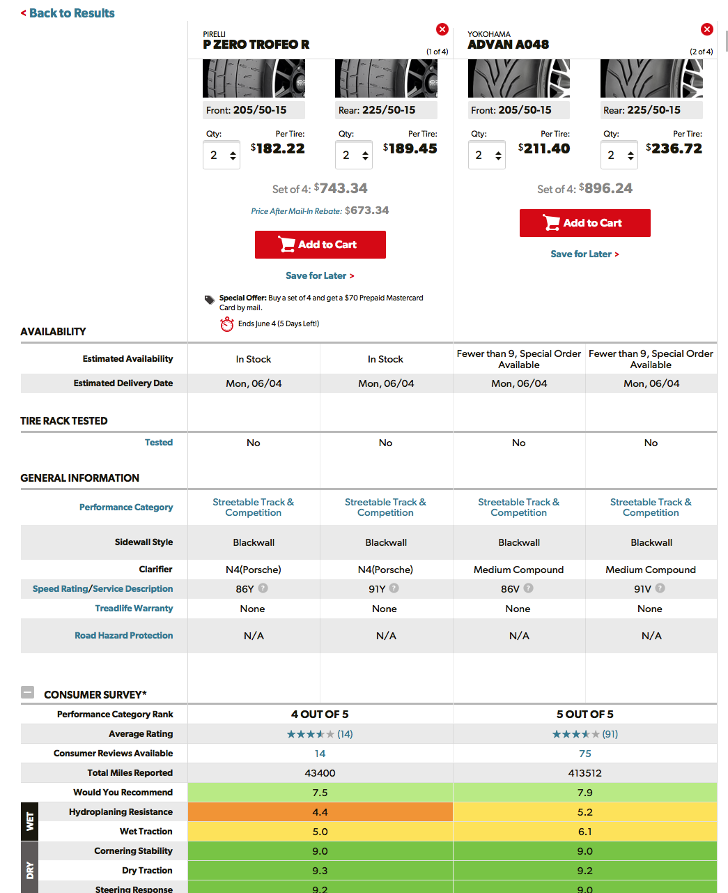 Tirerack shows 2 different brands that come in both sizes still, pricey at $190 each for the Pirellis and the Yokohamas are in the 220 each range. In the 205/50/15 and 225/50/15? The web site said no go for me and I called to check. They have different compounds from the same manufacturer, but not the same tire. |