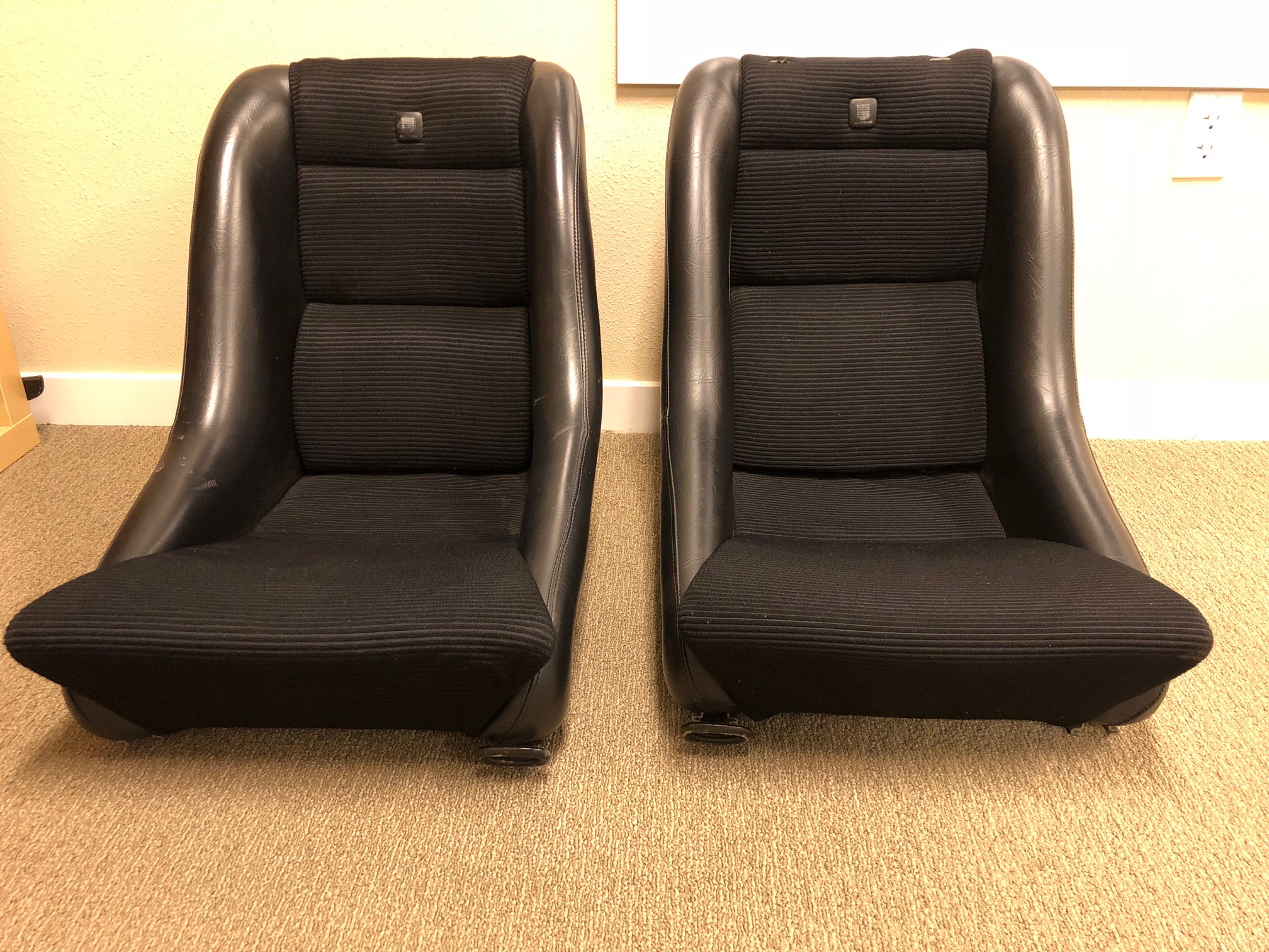 I just found a pair of Scheel seats for my 914 that I couldn't pass up. They are thought to have never been installed, and the underside and 914 seat rails suggest that might be true. The little damage that the seats do have topside looks like it could indeed be shop wear. Whatever the case, the price was right and the corduroy looked good, so I decided to buy them.