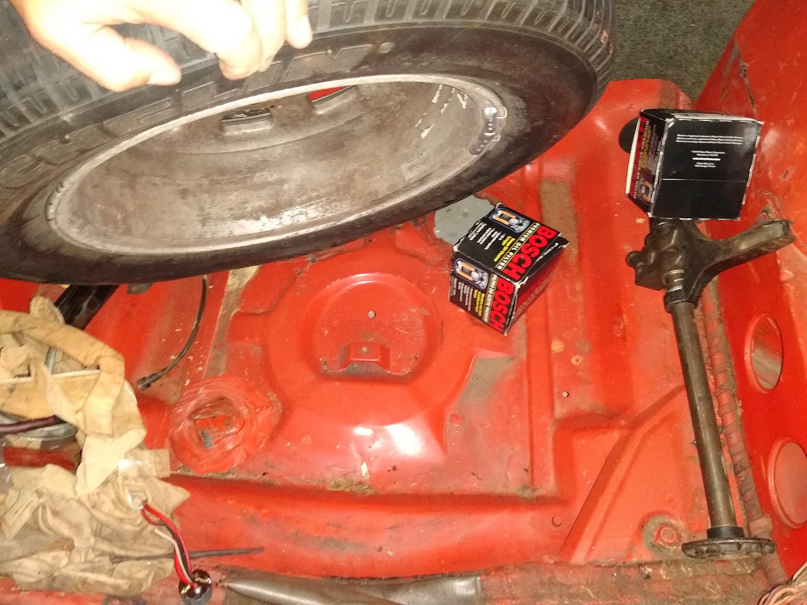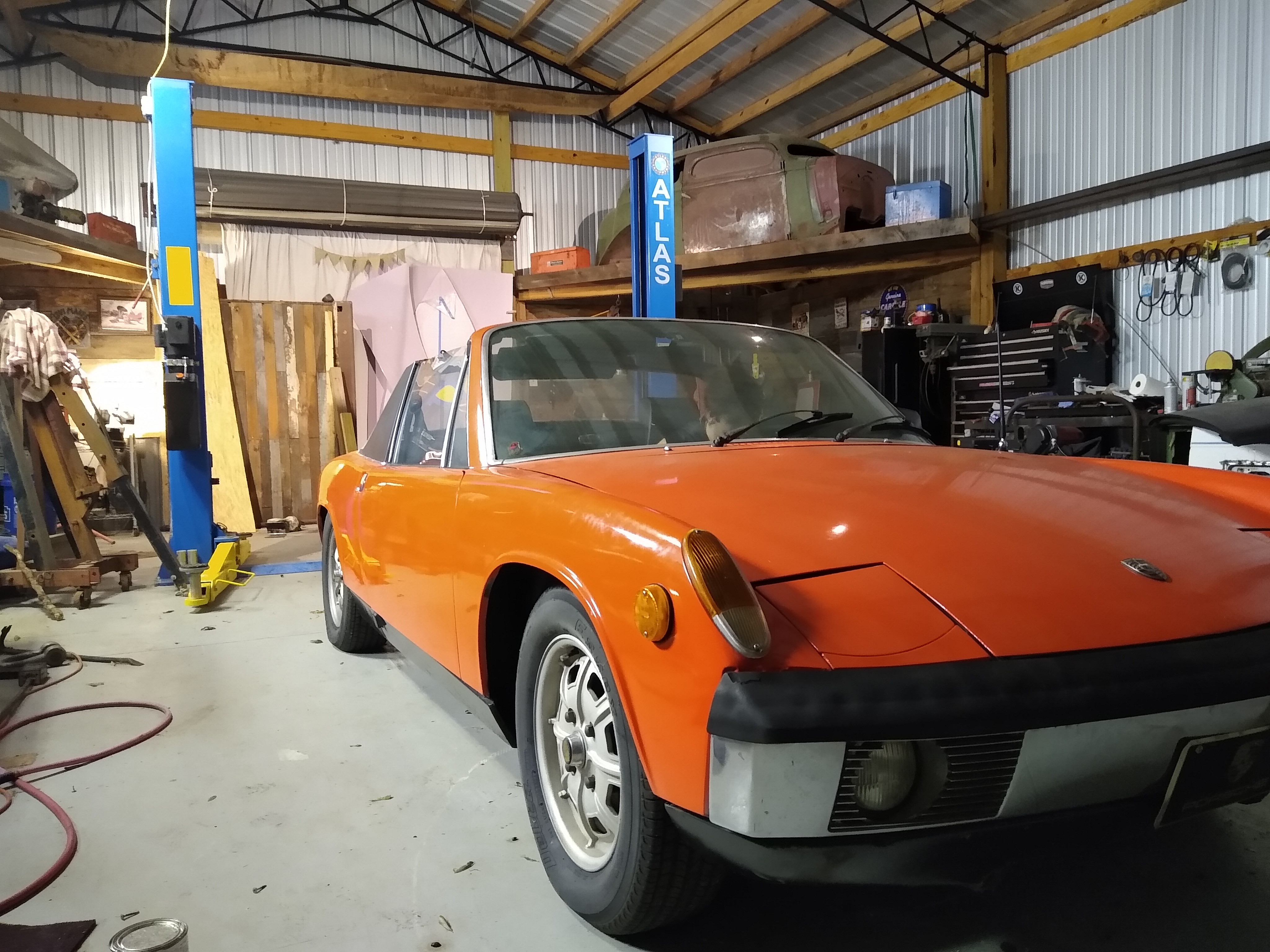 Hello everyone my name is Jerry also known to some as (newbie hoser scammer ) I recently within the past few days purchased our first 914 . I immediately fell in love with the car at first sight along with my two sons age 9 and 18. I was very nervous about purchasing a car that I knew nothing about, with that said the car arrived today and I had already prepared myself for disappointment because in the past every time I bought a project car it turns out to be way worse than I thought. I'm pleased to say this car did not disappoint me. I immediately started looking the car over expecting to find rotted floors and rockers , quarters or something. I pulled the trunk carpets out and no visible rust. I poked around with a screw driver and nothing. I scraped under coating off in the wheel well and corners thinking I'll definitely find rust there but nothing. I haven't pulled the rocker covers off yet so there is still a chance. The only place with rust was below the battery which didn't even look that bad, the dreaded hell hole was the only spot I could find so far and didn't look as bad as I thought.