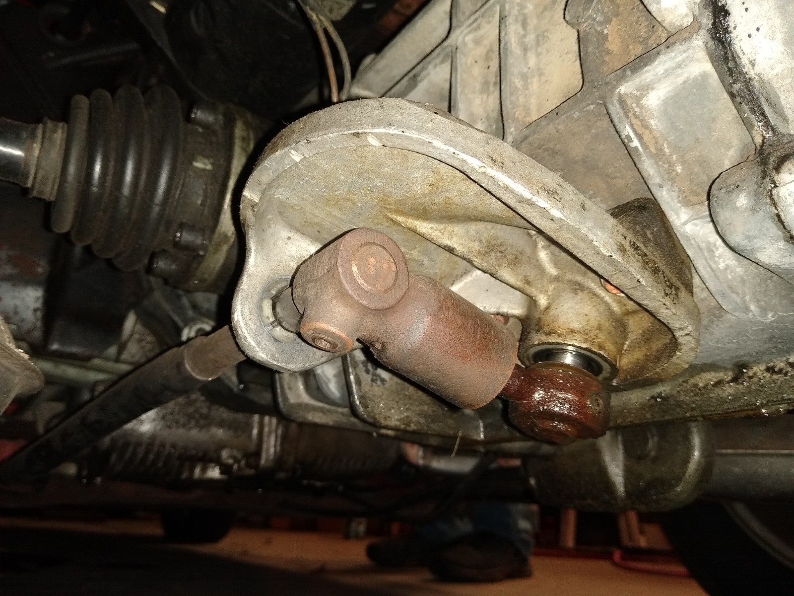 I believe this would be a side shift transmission. The car is stuck in third gear, the shifter moves freely. I tried to lay under car and shift it but the shaft coming out moves with hardly any effort. This has me worried