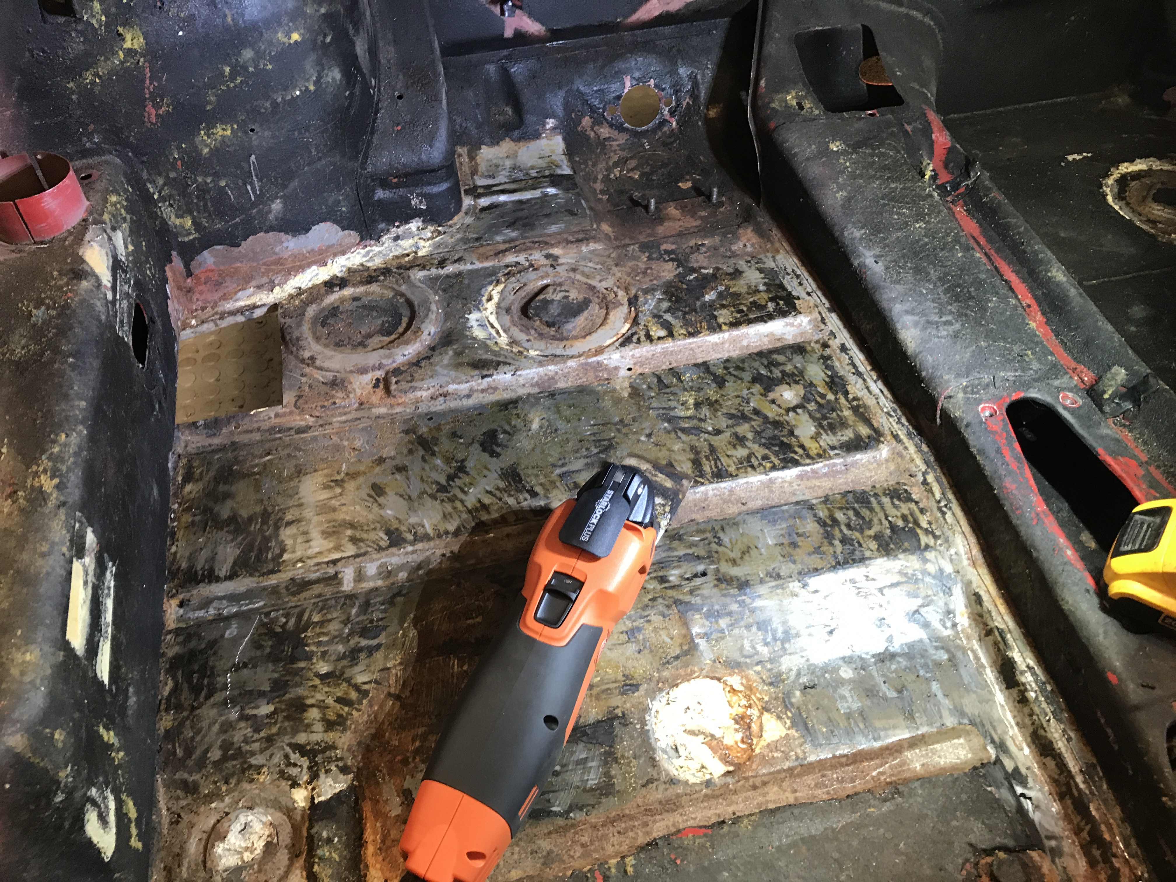 I was waiting for a delivery truck, so decided to make a rough cut out of the rear trunk floor. Still liking the Fein multi tool.