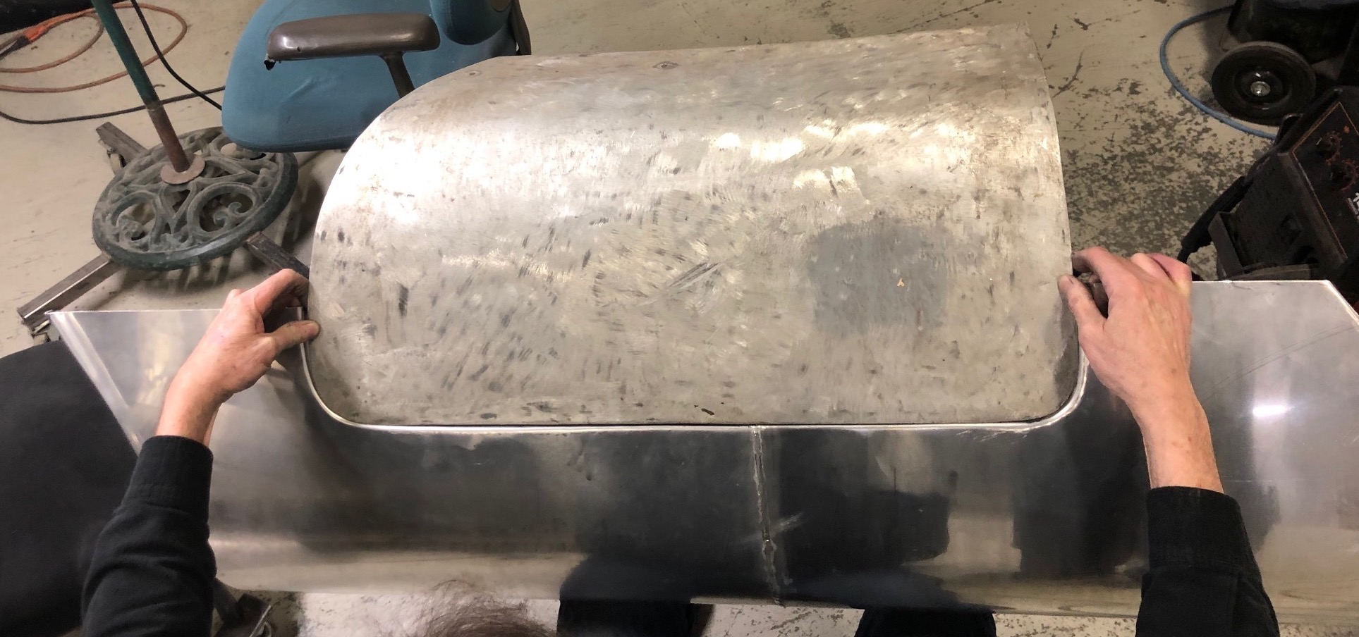 We have a 110 Mig, cost about $500. Takes the big spool of wire and does a pretty good job. Now I need to learn to tig since I'm doing aluminum. FYI -- I get that you are doing some unique work and TIG probably is the thing for you but I'll reply anyway with general info. No need for TIG to weld aluminum. Yes it's pretty, yes you have a lot of control. You can MIG aluminum. Ideally you use a spool gun. I've done it on an el cheapo Daytona MIG without a Teflon liner in my MIG cable but did have to work my way though jambs, birds nests, roller slippage, etc. But it can be done in a pich. Don't overlook OxyAcetylene gas welding as another possibility. You will need special aluminum flux (very cheap) and you will need special welding glasses with a different tint to filter out the more yellow-orange flare from the flux in order to see the weld puddle. I got mine from Tinman. They are pricey but they work great! https://www.tinmantech.com/products/safety-...elding-lens.php This tank was gas welded. ![]() Lots of knowlege and resources on Tinman if you're not crossed this site before. https://www.tinmantech.com/education/articles/ So far we've been doing tig, it comes out nice, the aluminum is thin. Not the best pic but you can see the seam in the middle. Thanks for the tip on Tinman, I'll check it out! Attached thumbnail(s) |