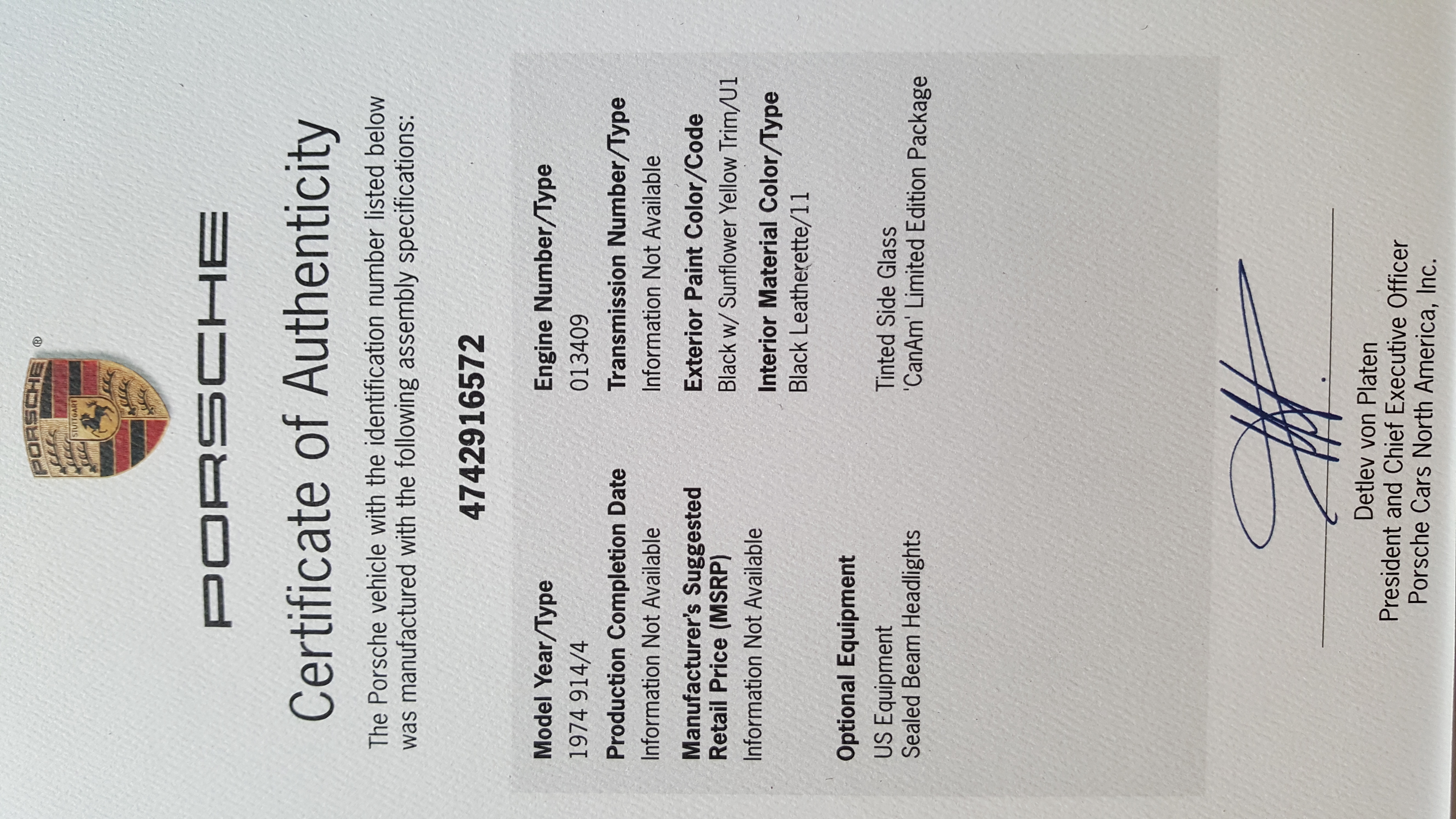 I bought it 3 years ago here on 914 world. I have the certificate of authenticity.