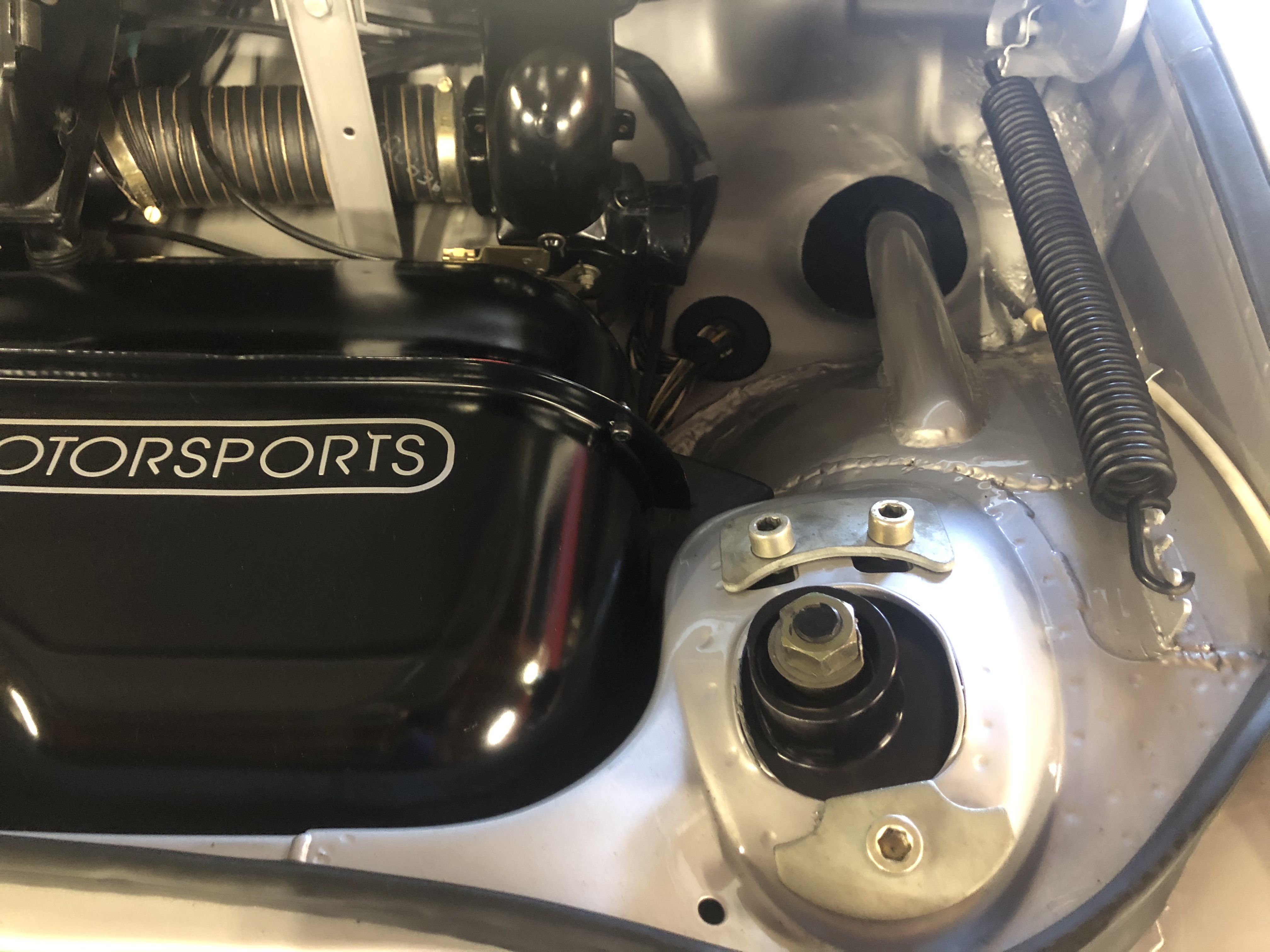 I keep finding details on it that are just mind blowing. 993 Twin turbo brakes and rotors, 7 and 9x16 turbo wheels, the 993 3.8 RS spec motor and WEVO 915 are amazing and seamless, Recaro Pole Position seats with custom brackets that leverage the factory seat rails, it just goes on and on (IMG:style_emoticons/default/beerchug.gif)