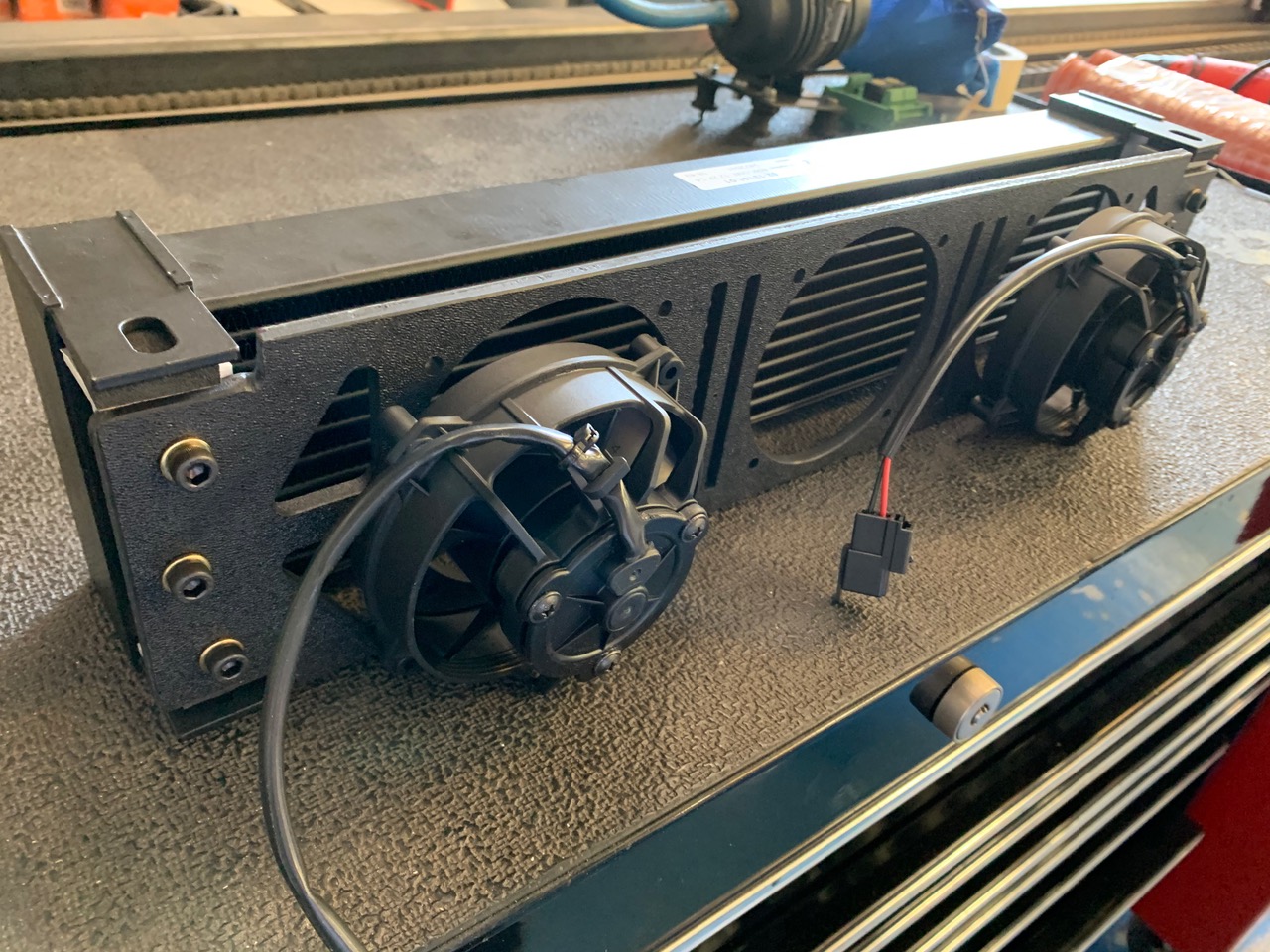Hi All, Updating this thread with progress photos from my recent first revision. I got a little behind on this, however happy to show a complete piece. We ended up moving the structure right up against the cooler face and eliminating pass-through holes to increase the amount of suction and direct airflow straight-through the cooler. I've received messages from a few members, please let me know if anyone else is interested in these. Happy to help the 914-community! (IMG:style_emoticons/default/bye1.gif) Final piece: - 16-18g steel or aluminum - No welding necessary - Fits 1-4 fans. Buyer determines amount, no extra charge. ![]() ![]() ![]() i am not in the market but that is a nice looking set-up, very well done. it might not be seen after installation of the shroud but that is great, if i were doing a front oil cooler i would have to consider it. |