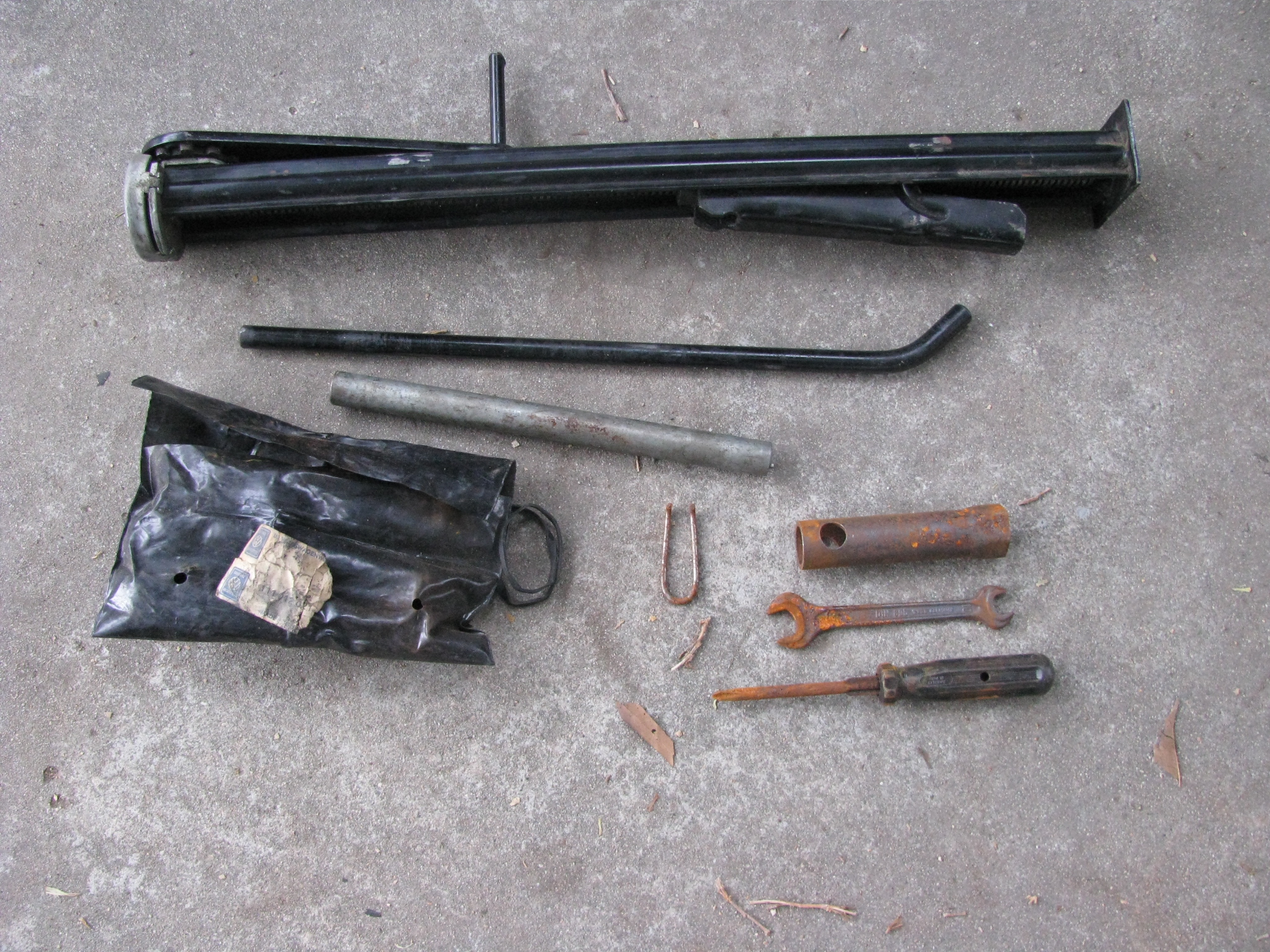 Here's mine - 1974 1.8L. All original. I don't think I ever had the short, stubby gray bar that's shown in the response above. That's better. I agree, I have no recollection of such a short bar in a tool kit, but it was the best image I could scrounge up on short notice. Thanks again. I am working to get an LE into Concours form. Have a 73 but no tools in it. Been so long since I had one originally that I can't remember. I also don't remember the gray bar. Guy on fleabay that advertises one that no Judge will question. Jack is in good condition, just want to not get a deduct on tools if I can help it. Have 70 6 but know the tools aren't the same as a 4. If you need a jack, I have an extra. It's a 75 or 76, so not concours correct. See photo. |