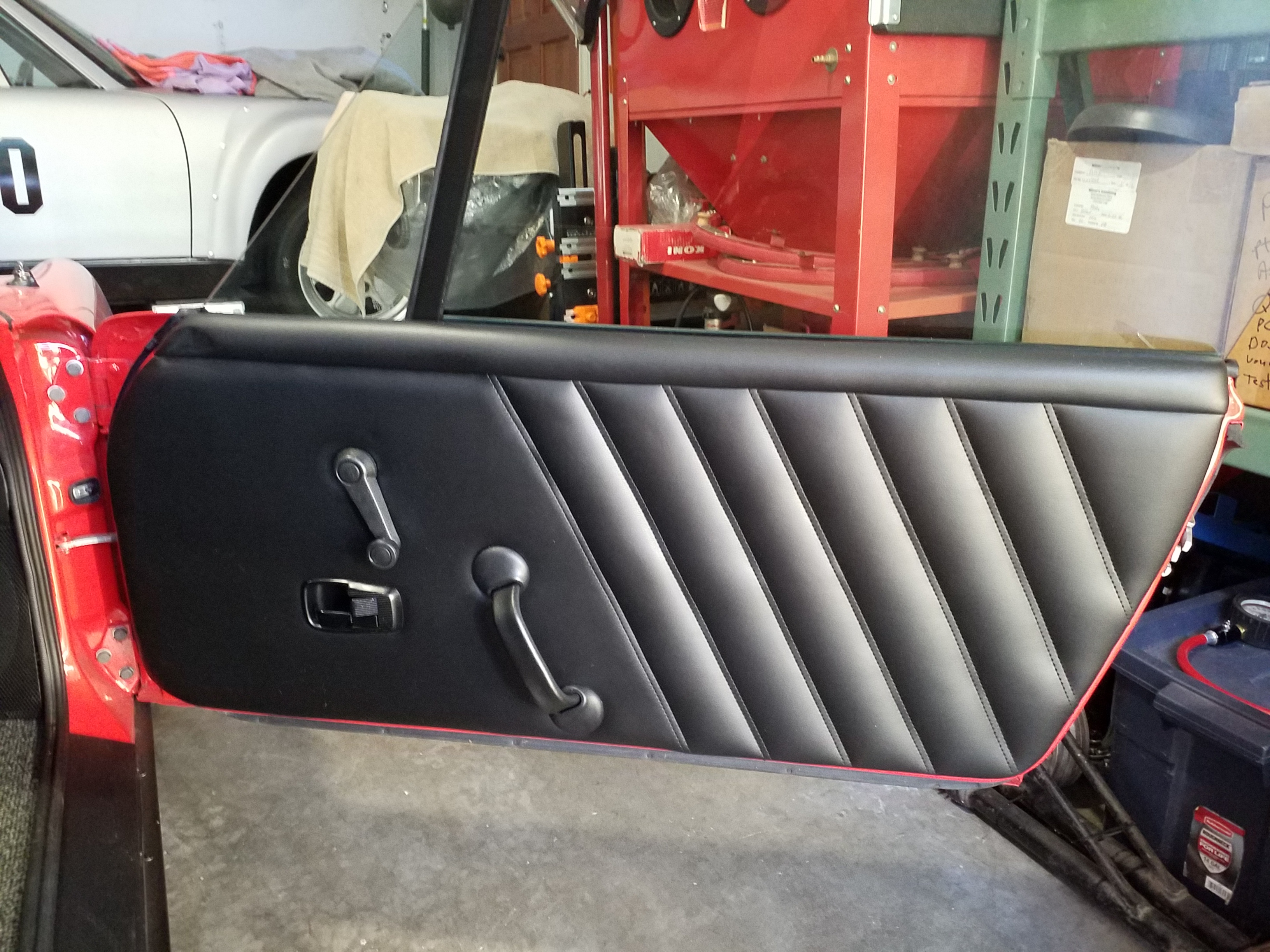 Mine are about done here. Lots of hours but redid the entire door panels with it. Ended up fabricating the door pull mechanism too. Not an easy task. Fiberglass trim pieces to cover up my mechanism, but turned out nice. Have not cut out the window cranks yet.