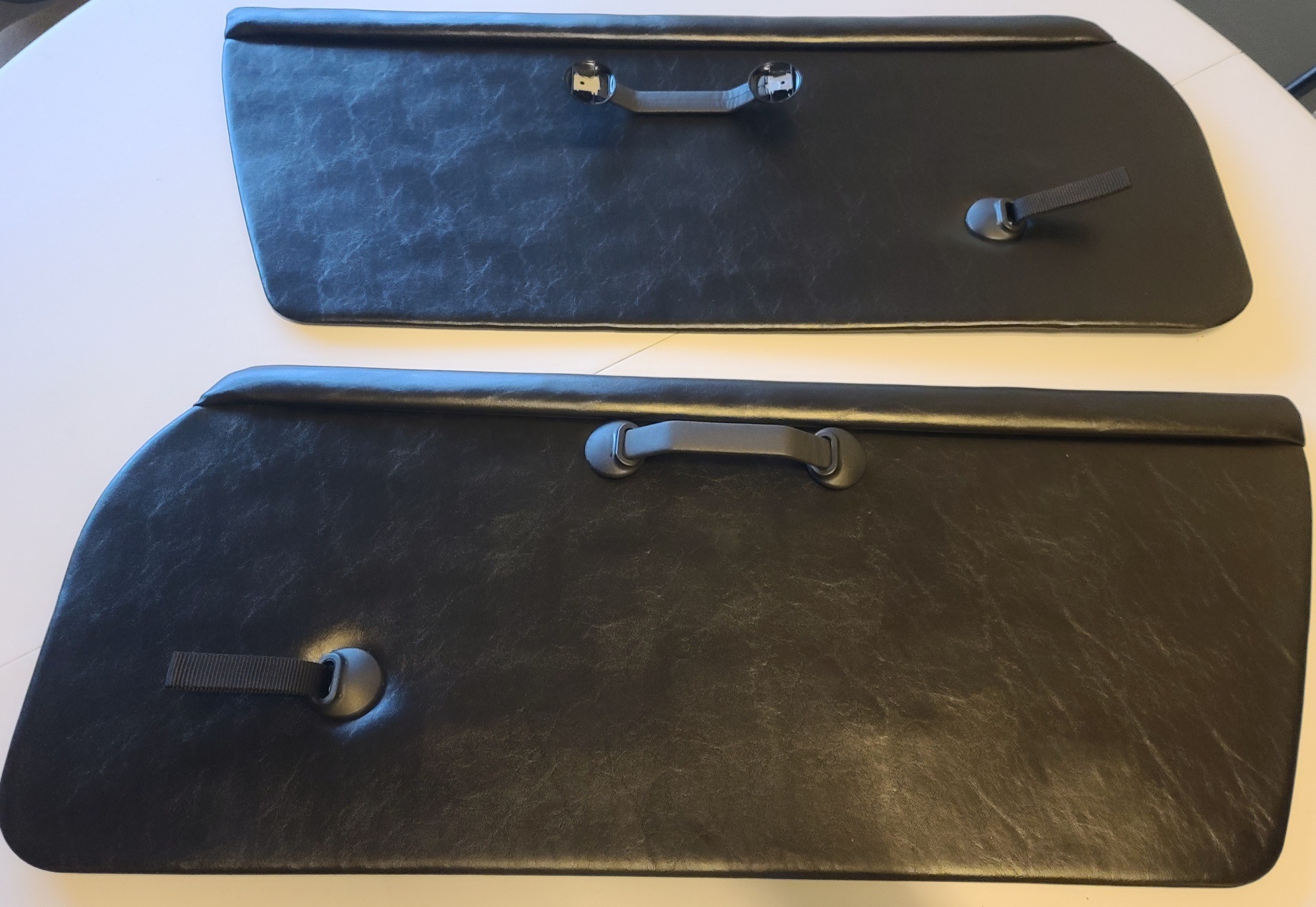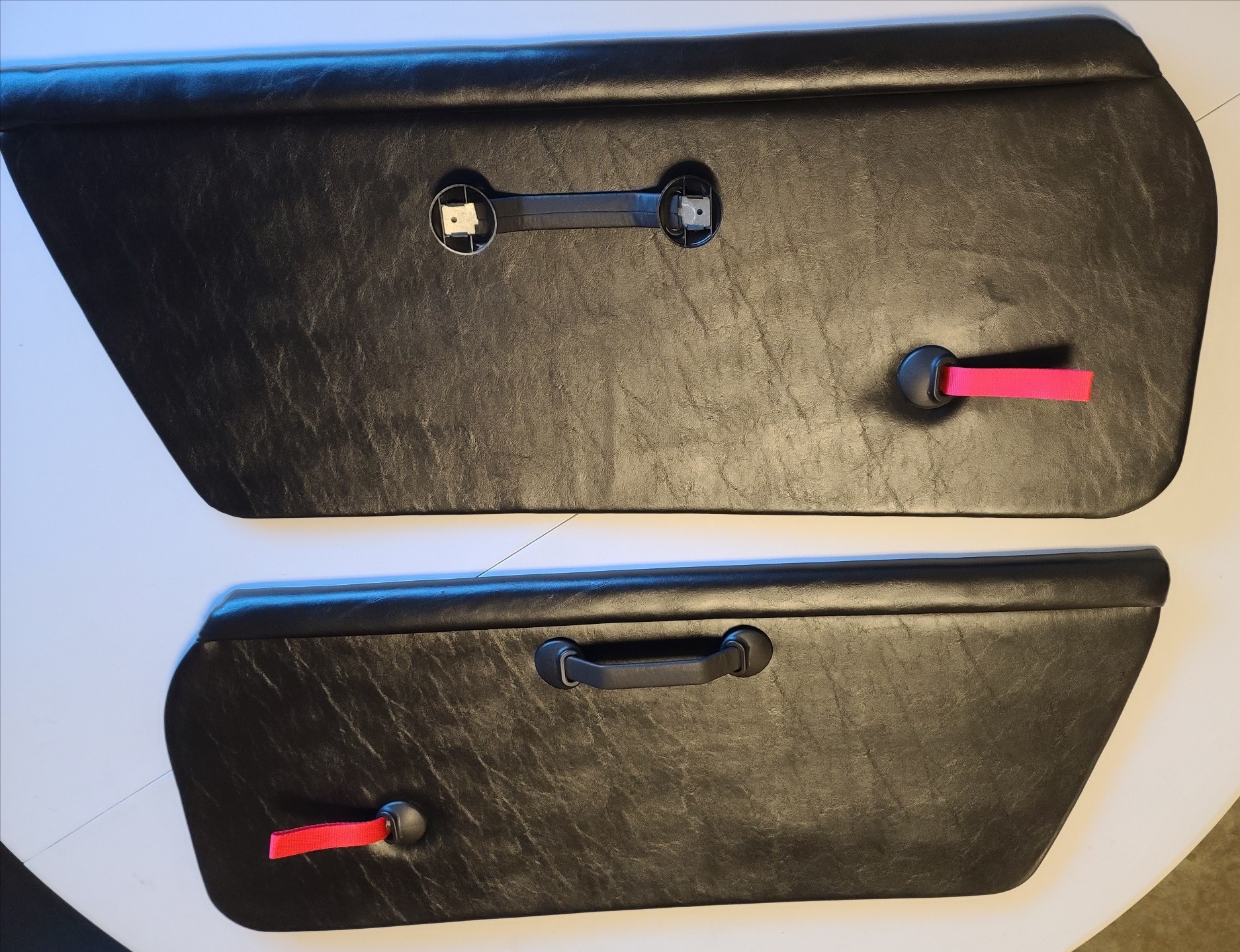 Mine are about done here. Lots of hours but redid the entire door panels with it. Ended up fabricating the door pull mechanism too. Not an easy task. Fiberglass trim pieces to cover up my mechanism, but turned out nice. Have not cut out the window cranks yet. @Costa05 That is very nice. |