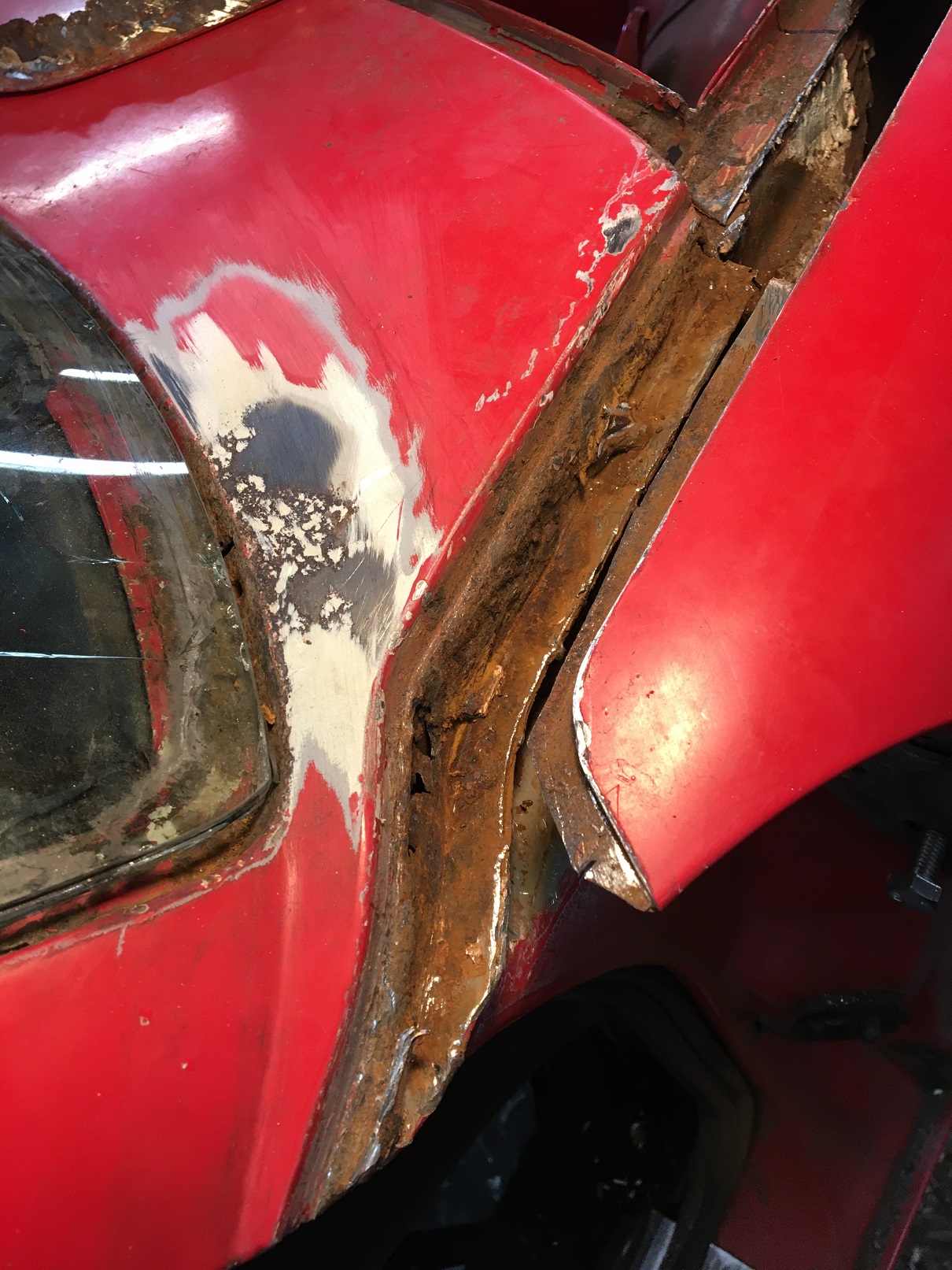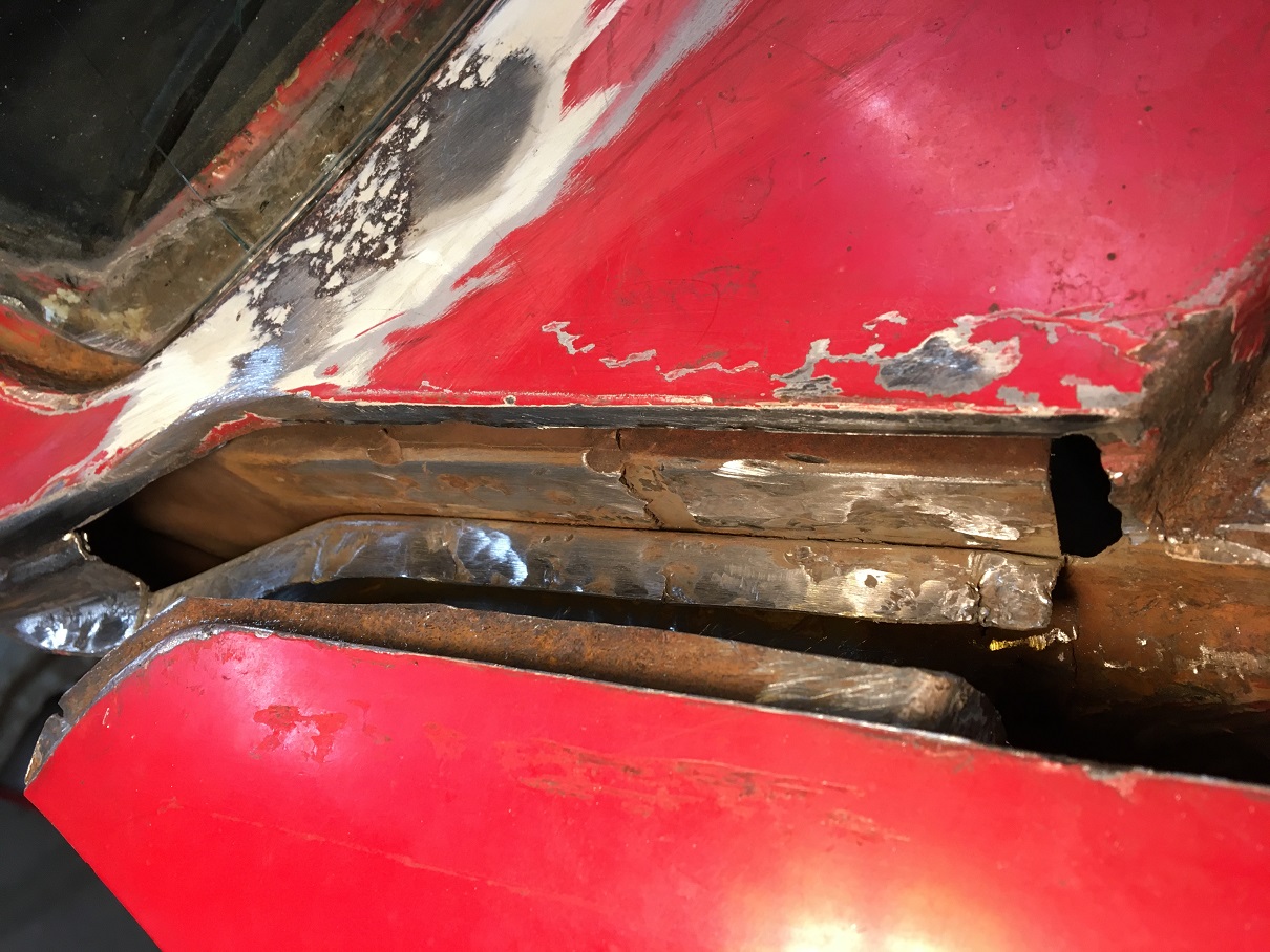 A good metalworker thought he had it—but we had to repaint that side of the car. That was after another good metalworker opened up a window in that spot to "really fix it." Well, there's something going on under the paint again. It's minor, but we all know what it means… (IMG:style_emoticons/default/barf.gif) If I ever go in there again, I'd really look at not only eradicating all rust with new metal, but what might be done about keeping water out and help find a good drain path for any future moisture that does manage to get into that area. |