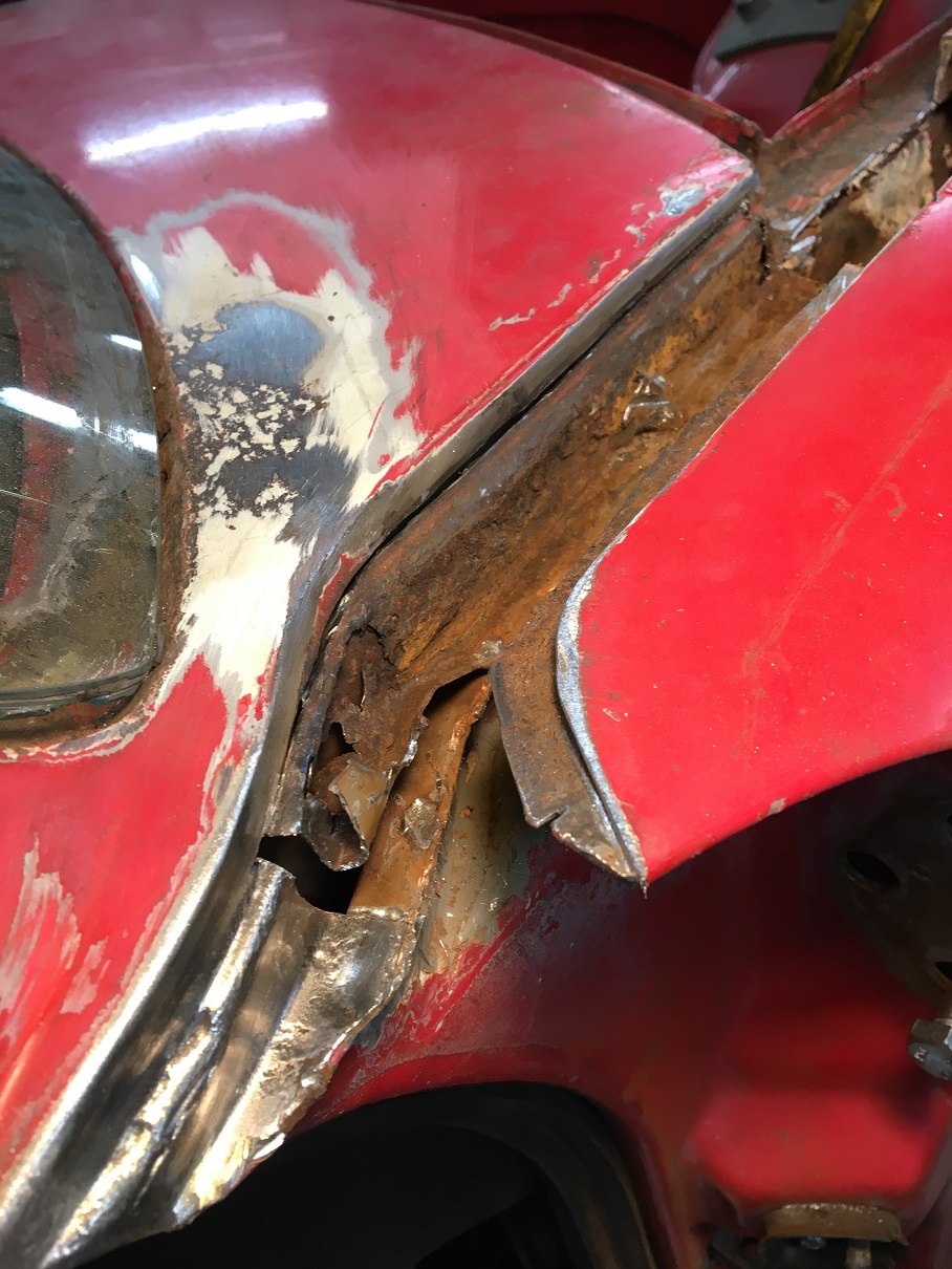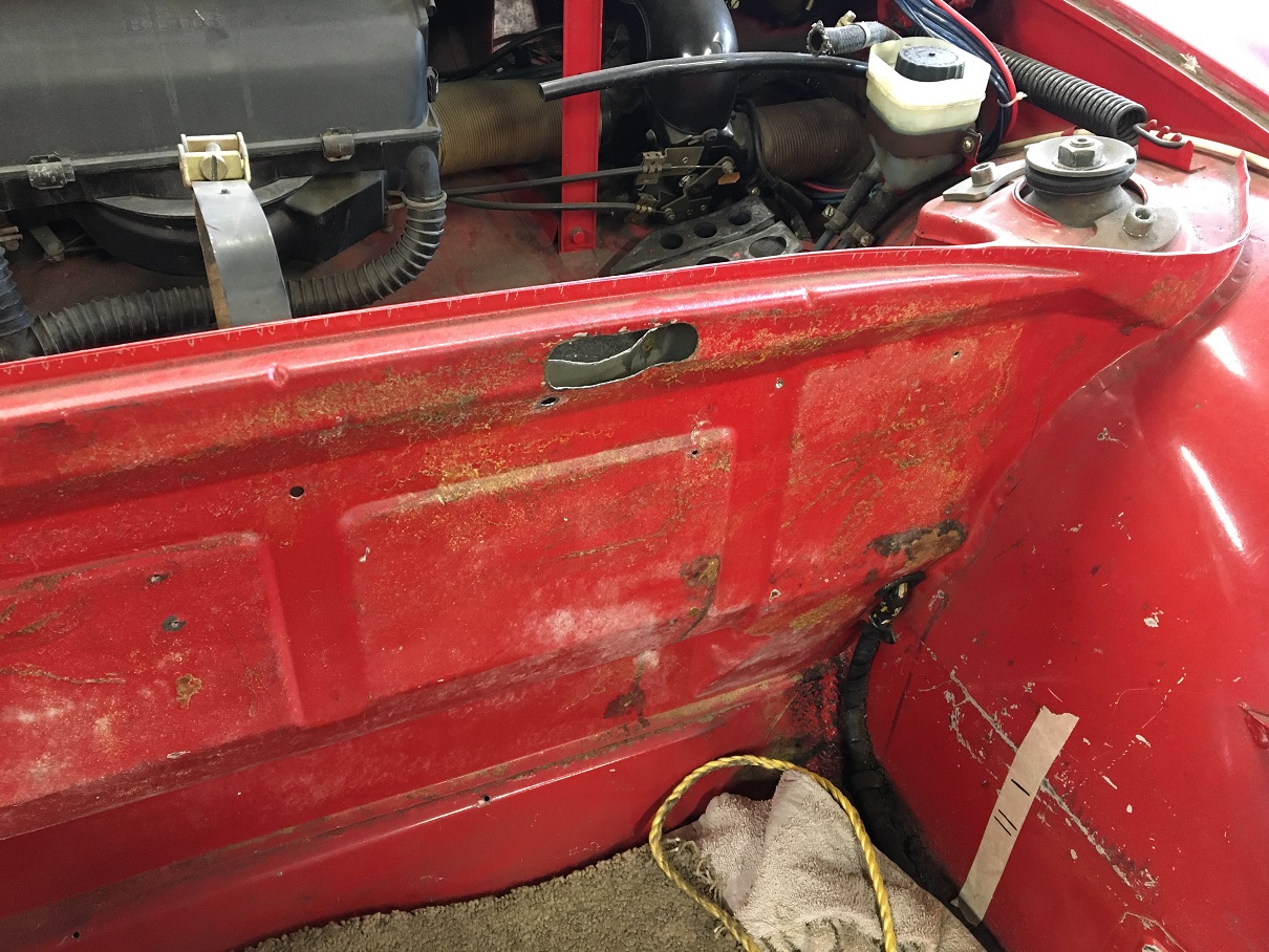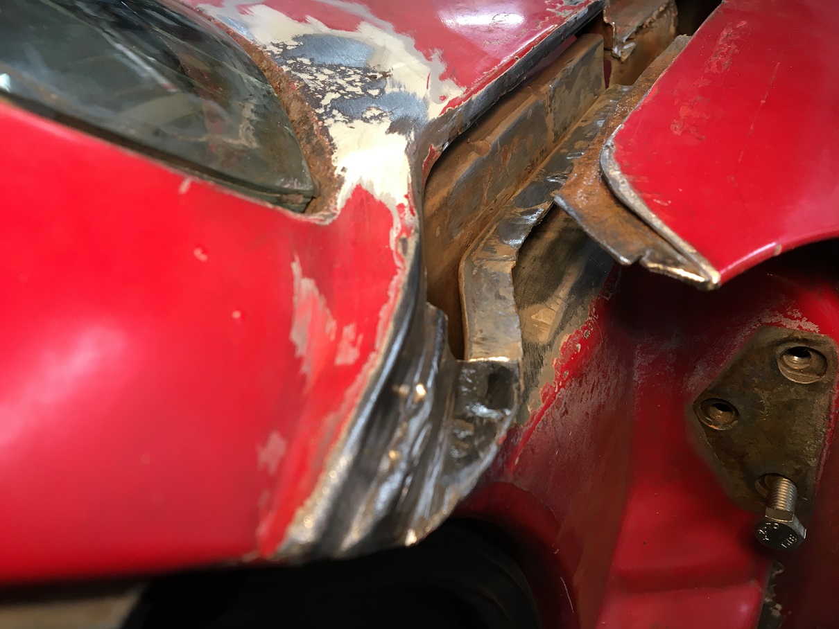 I worked a couple of hours last night and began to look for solid metal at the junction of the fender with the cowl.