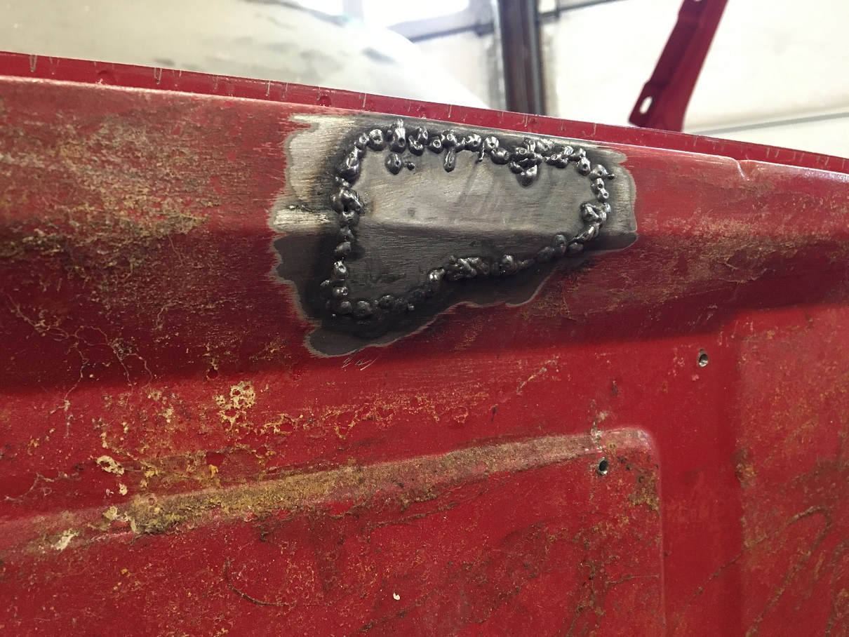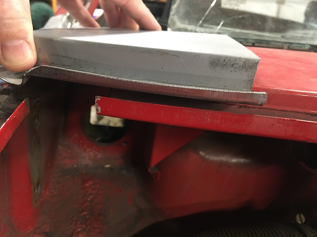 We can see the factory reinforcement layer in the windshield frame corner. I didn't touch that piece, the cut is factory. Then I removed the rusted metal in the cowl corner to the trunk seal area. This is basically ready to receive the repair sheet metal piece after some Ospho and protection. I moved on to repair some DAPO chassis weakening done to run the wiring to a very important piece of equipment (IMG:style_emoticons/default/rolleyes.gif) , an amplifier mounted on the bulkhead in front of the tank... Before; Prepared the patches to fit in the 2 holes, file, adjust, try, and again, until good fit... The bulkhead is actually thin metal ~0.030" while the back side of that beam is closer to 16 ga. Luckily, I had pieces of metal of the same thicknesses. (IMG:style_emoticons/default/smile.gif) Bulkhead layer patched: Then the back side (tank side) of the cross beam piece. Small steps... (IMG:style_emoticons/default/smile.gif) |