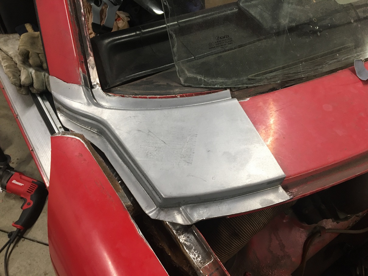 No big surprises here. At his point the cowl corner needs to be addressed at the fender junction, at the front trunk seal, and under the windshield area. I think my best bet is to get both or these replacement parts as a foundation for the repair. Any comments one the fit of these? ![]() ![]() |