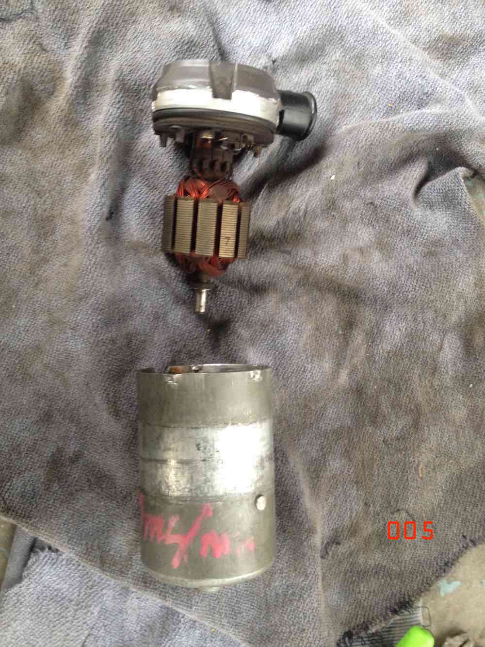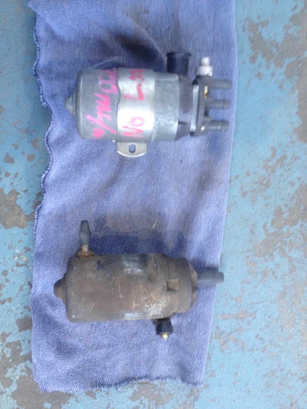Disassembled the 005 pump today. Getting better, all apart in about an hour. The top part of the pump is identical to the 009 unit. The motor itself is where the differences are. The armature section (electro magnets) and interior permanent magnets (Fixed to the pump casing) matches the dimensions of the older and earlier mercedes fitted unit but lacks any "turbulence" shrouds (if that is what the shrouds are). In the 009 unit that supersedes it the armature section has smaller sized electromagnets. The plate holding the brushes and spring wires connecting to the electrical plug is closer to the earlier mercedes fitted unit in layout and components. Basically the internal components are being miniaturised and reduced in size from 005 to 009. I haven't measured all the different components but the external casing of the 009 looks slightly shorter in length than the earlier 005. The reason that the 005 has come apart is that it was delivering insufficient flow when tested. at first glance visual inspection we can't seem to find any obvious reason for that. the motor and internals are in the same condition (very good) as the 009 pump that came out of my 914. The 1974 SAAB EMS it was fitted to had done approx 80,000km (50,000 m). The pump came out of the SAAB years (decades) ago and has been stored since. Comparison images. |