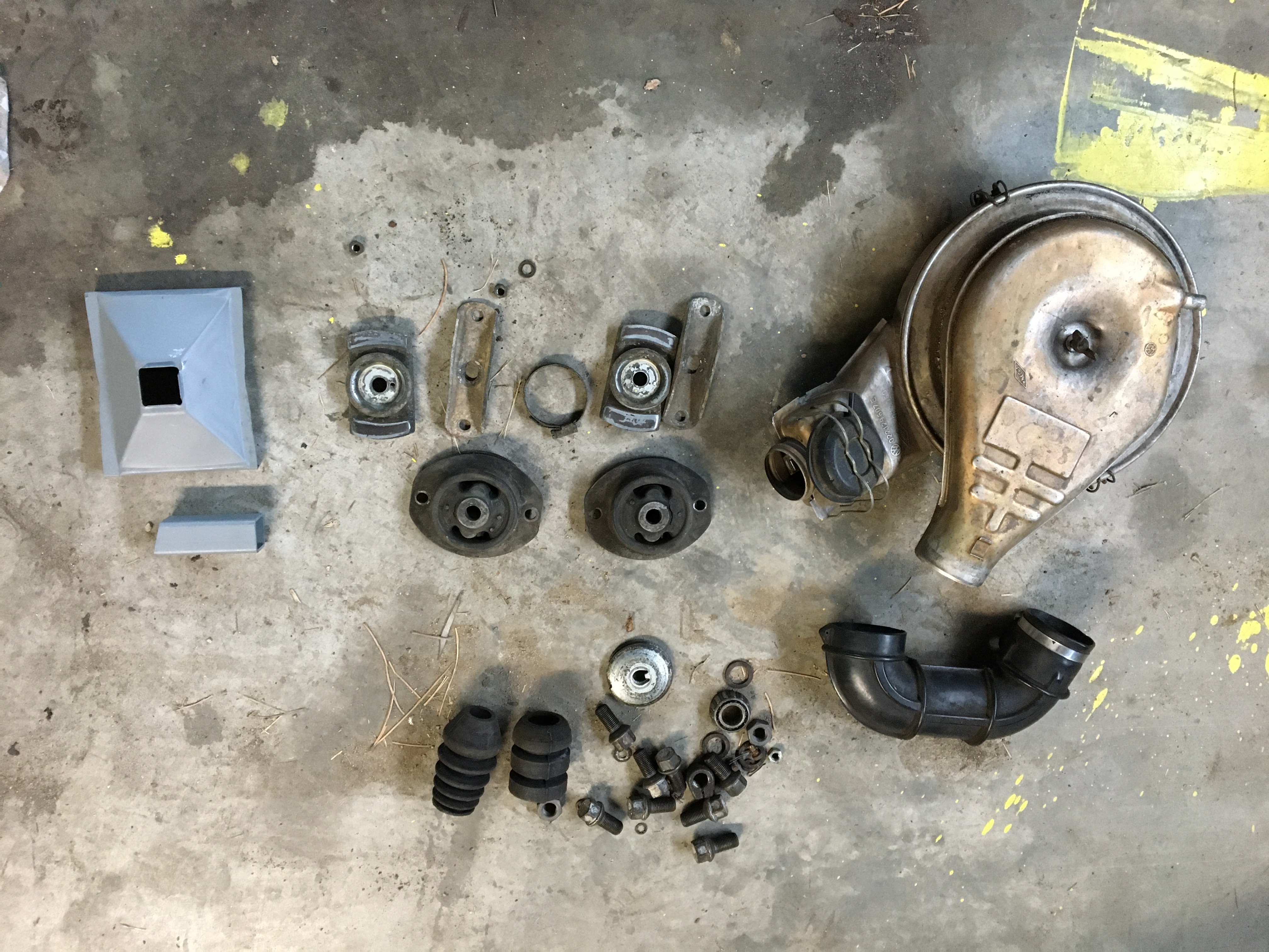 My son's car is now going to paint. I want my shop back. He has been good about attracting extra parts. He has been not so good about getting rid of extras. In fact he is worse than "not so good". He is about to order seat covers and cockpit gaskets, so this stuff has to go to make room. Rather than pricing individual items...we'd like for someone to get a great deal on everything. Obviously, this stuff would be better picked up than shipped. This package includes, three front struts, rotors, hubs, front brakes, worn outer decos, air cleaner assembly, suspension hardware, two door shells (sorry just the shells) with some rust in the bottom edges, heat exchangers pair, jack point repair package and a couple throttle bodies (not shown) for $250 obo. If prices are out of line, school me. He is needing in trade, two jacks and tool kits, black seat covers, and a crack free dash.