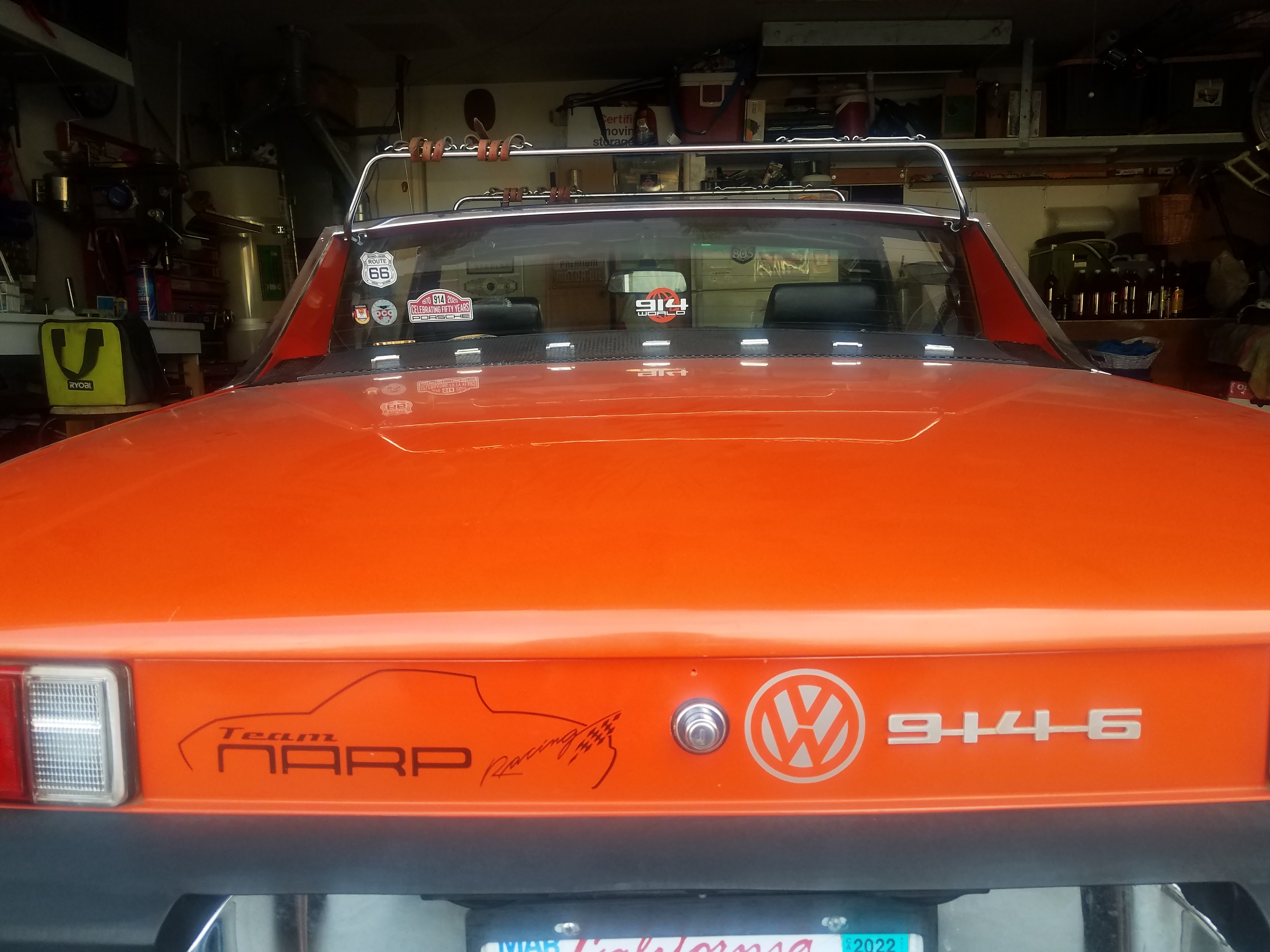 I know this will rub the purists wrong, but I figured out a way to emblematically honor the 914's VW roots. I purchased a 914-VW-Porsche emblem in black and then carefully removed the 914 portion of the script. I did that for two reasons-