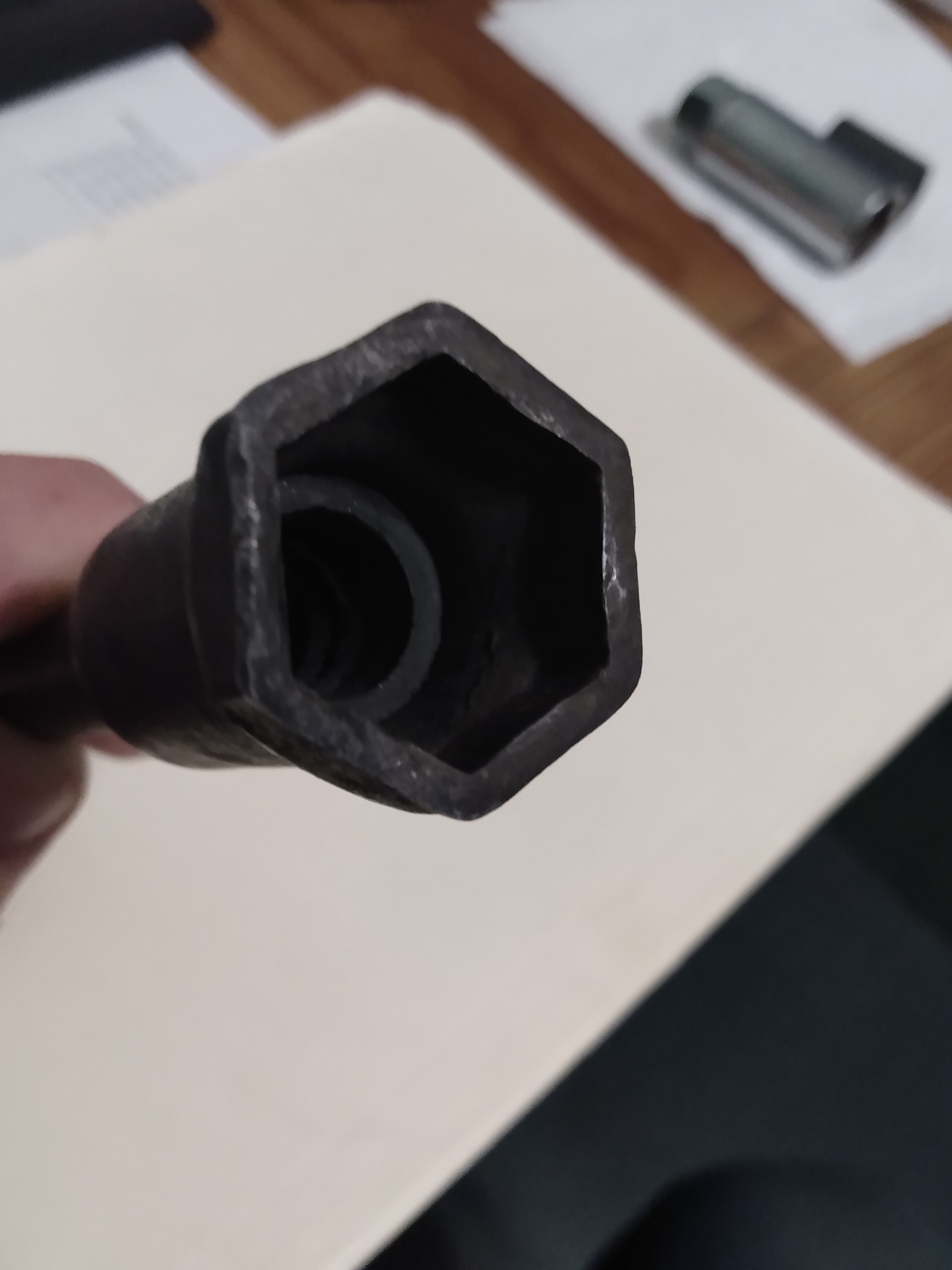 I pulled out the rubber. So this is what it looks like. Sierra Madre is selling new spark plug wrenches but they don't really match the old ones, so like everybody else, I think I want to find a cheap new generic one and grab the insert if it matches well enough. |