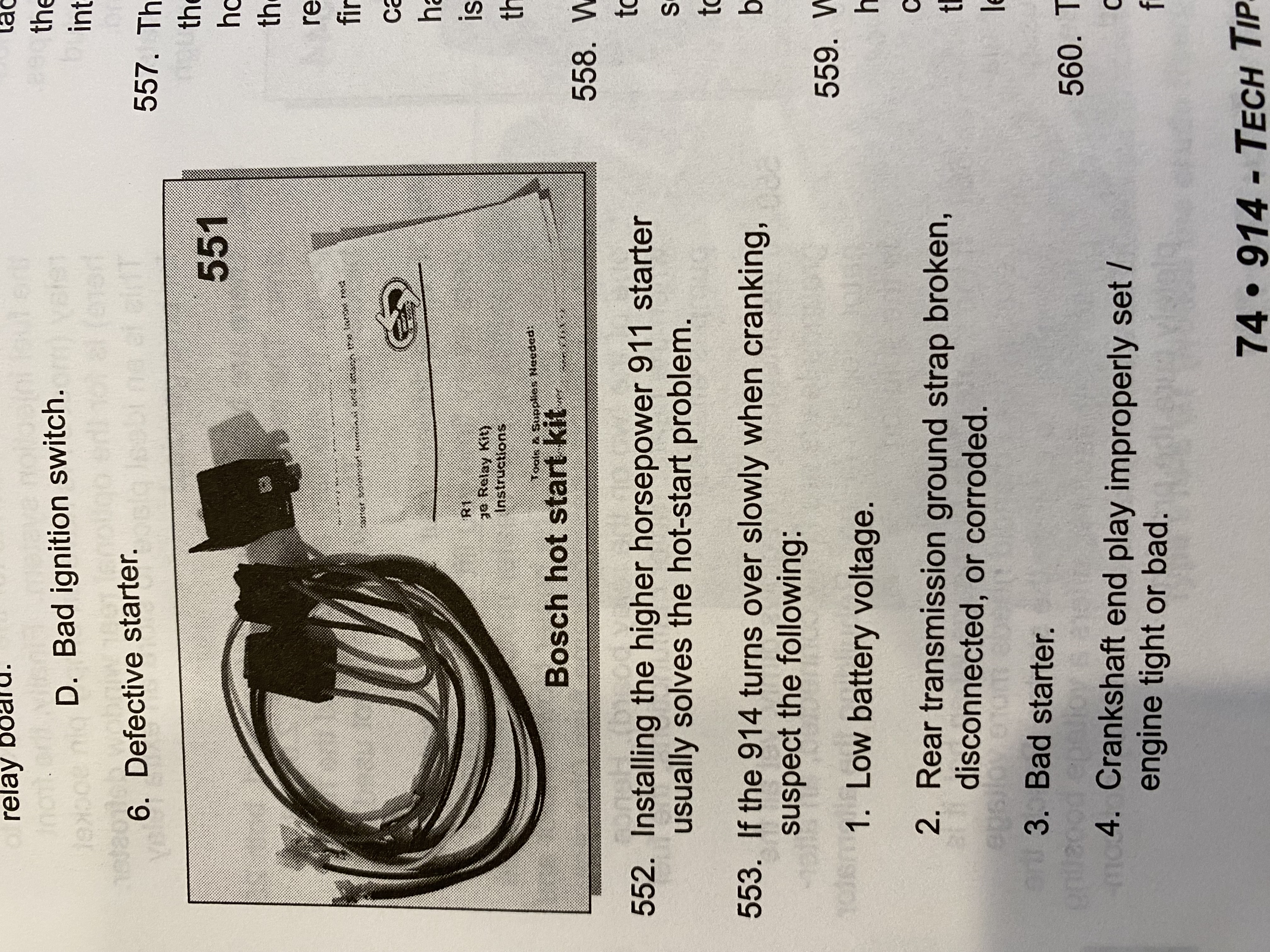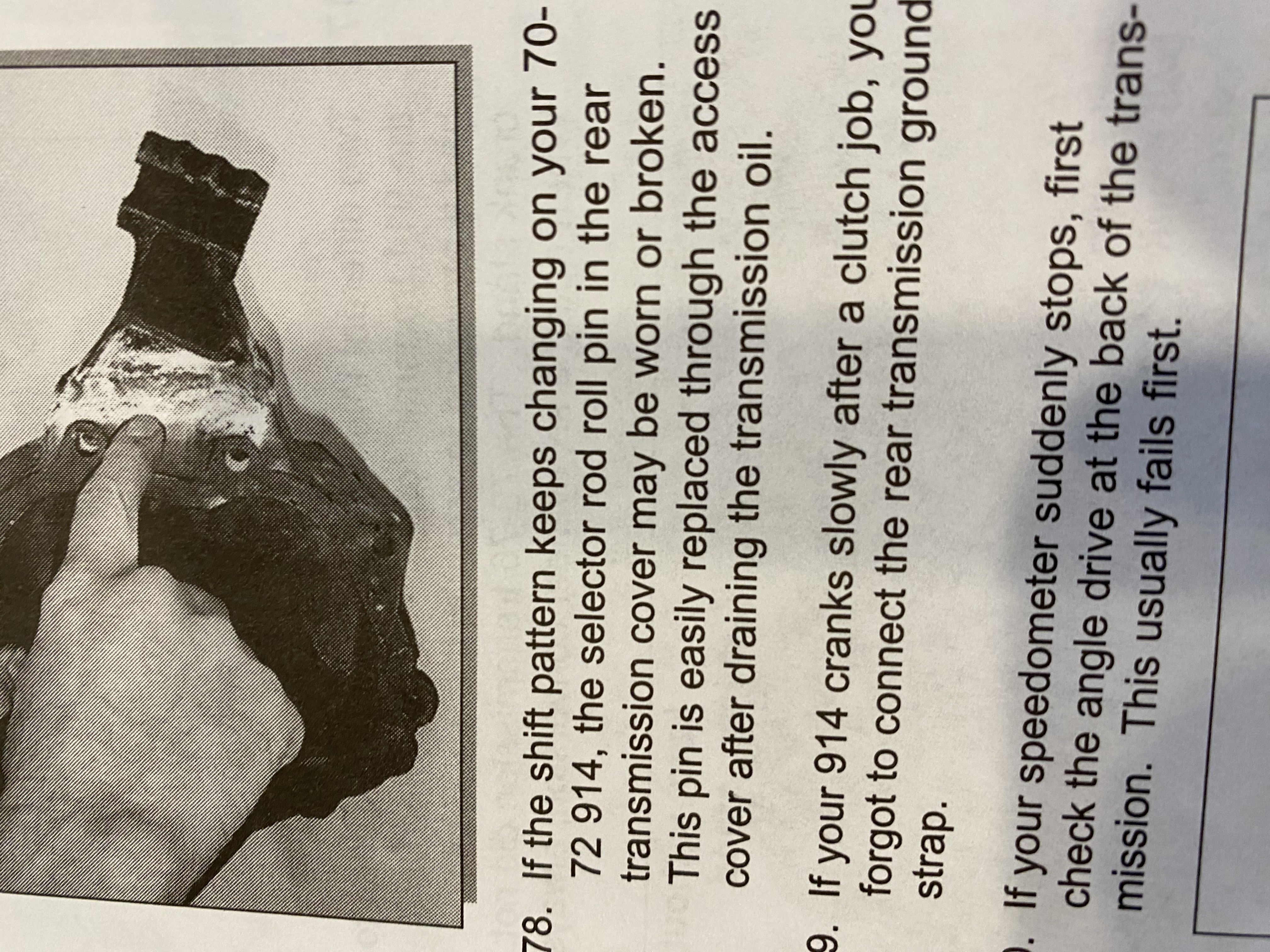 1979 had a 914 sold and promised the guy a clutch so he could pick it up the next day did it myself (used to be able to change the clutch assembly in 45 minutes) got the job done and tried to start the car, turned over slowly. Thinking it has a weak battery I put a battery charger on boost and tried again, still slow start and then smoke started to come from the center tunnel. Found out that I had melted the accelerator cable inside the tube. DISASTER!!!!!!! Spent the whole weekend cutting the tube out of the center tunnel and replacing it. I had forgotten to reconnect the rear transmission ground strap and the starter was using the accelerator cable as its ground. One of the first things I thought of when writing the book 914 "tech tips 700" In fact I put it in two different places!