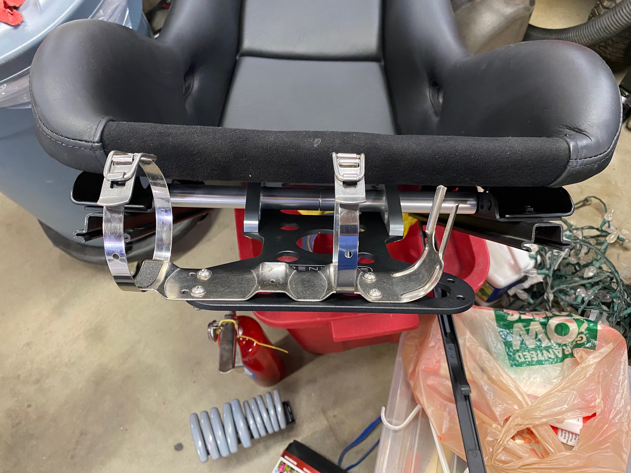 Does anyone have this installed in their 914 ? https://www.h3rperformance.com/collections/...sher-seat-mount Looks like @pvollma has it on but it's not specified how it gets installed ... http://www.914world.com/bbs2/index.php?sho...p;#entry1961034 Would otherwise anyone know of alternative fire extinguisher mounts that actually fits under and in the front side of the passenger seat without having to do custom mods ? Thanks ! I have this one. I was able to secure one side of the bracket on one of the seat rails (b/t the seat rail and the bottom of the seat). I believe I had to get slightly longer bolts to accommodate that extra thickness. I intend to go back and fab something up that would serve as an extension to allow the other side to reach the other seat rail on the bottom of the seat, but I haven't gotten to it yet. It's pretty secure with just the one side bolted in, but I want it to be symmetrical and fully secure. |
