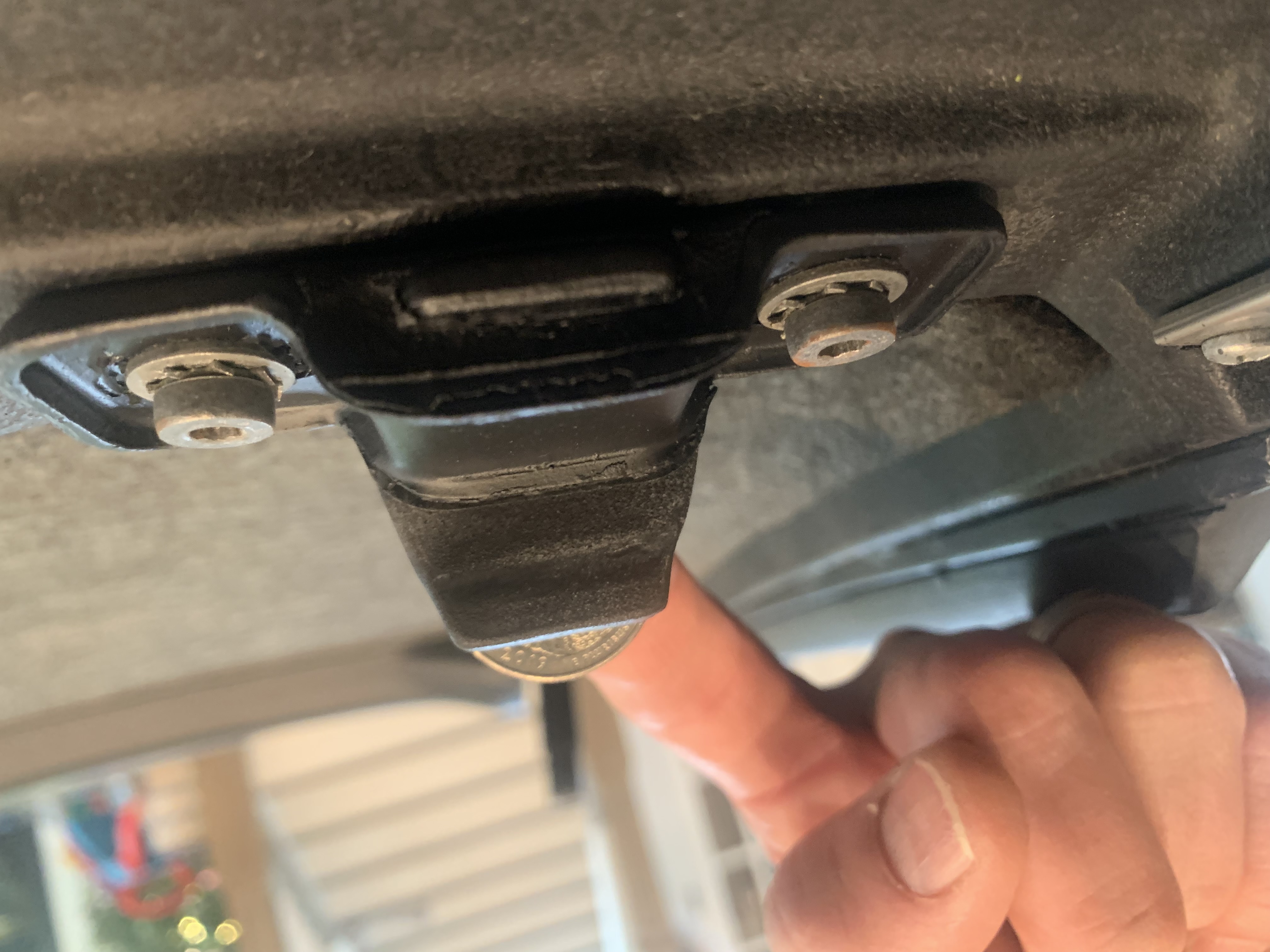 This top has "worked" for as long as I've owned the car (approx. 3 years). Again, this is the only 914 I've ever owned so I have no point of reference on fitment. The latches work on this roof and with these rubber stoppers. I think it's clear that I have a late roof and windows, but I believe I have early latches. Rubber stops ... not sure. Looking for advice on what to do, if anything. |