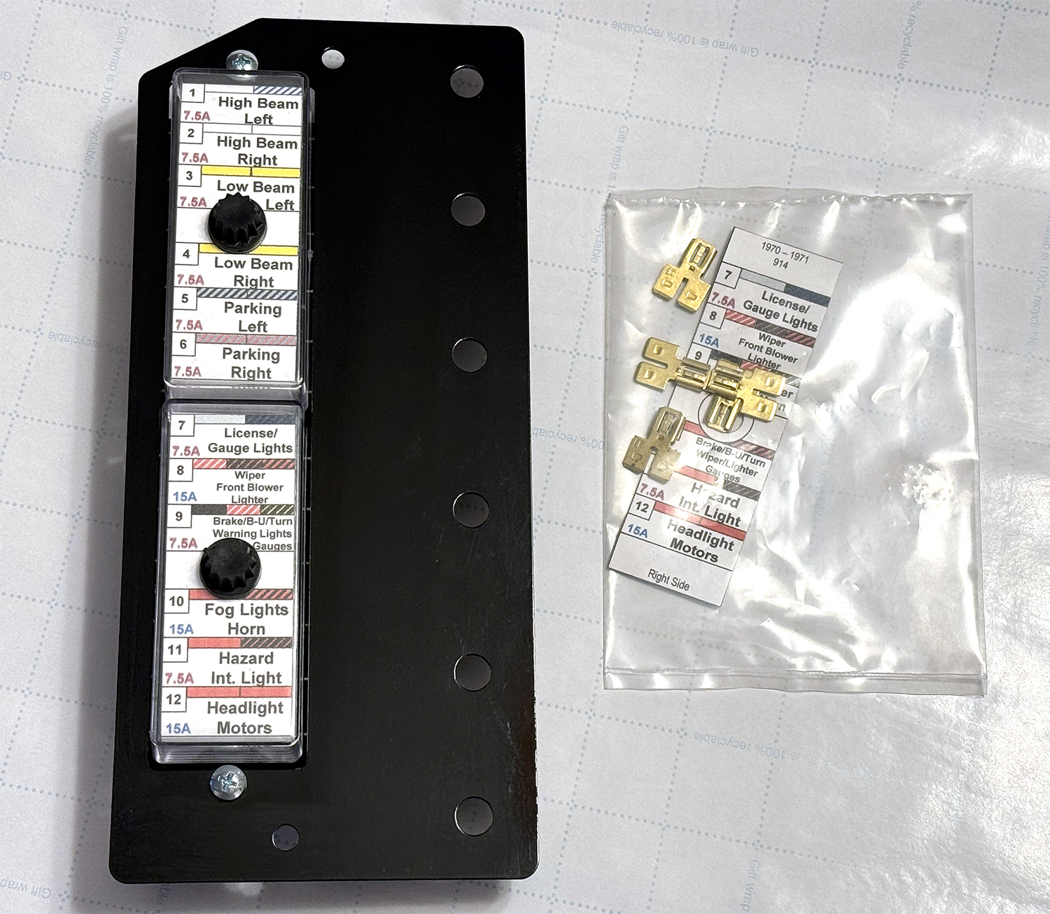 "Upgrade your 914 fuse box with our simple-to-install replacement. Upgrade your Porsche 914 to modern blade-type fuses! The JWest fuse box will put an end to the corrosion problems of the original fuses. Much greater fuse contact area and secure covers that you won't kick out of place entering the car. Includes a set of interchangeable labels to match the year of your 914. Much more useful than the factory symbols, these labels include fuse rating, names of the items protected by each fuse, and the wire colors connected to each fuse. Fuses 1&2, fuses 3&4, and fuses 10,11,&12 are bussed together internally, just like the factory fuse panel. No drilling or wire cutting involved- the JWest fuse box bolts and plugs right in." MSRP: $155 Asking $120 plus shipping Location: Philadelphia, PA -Mike Attached thumbnail(s) |