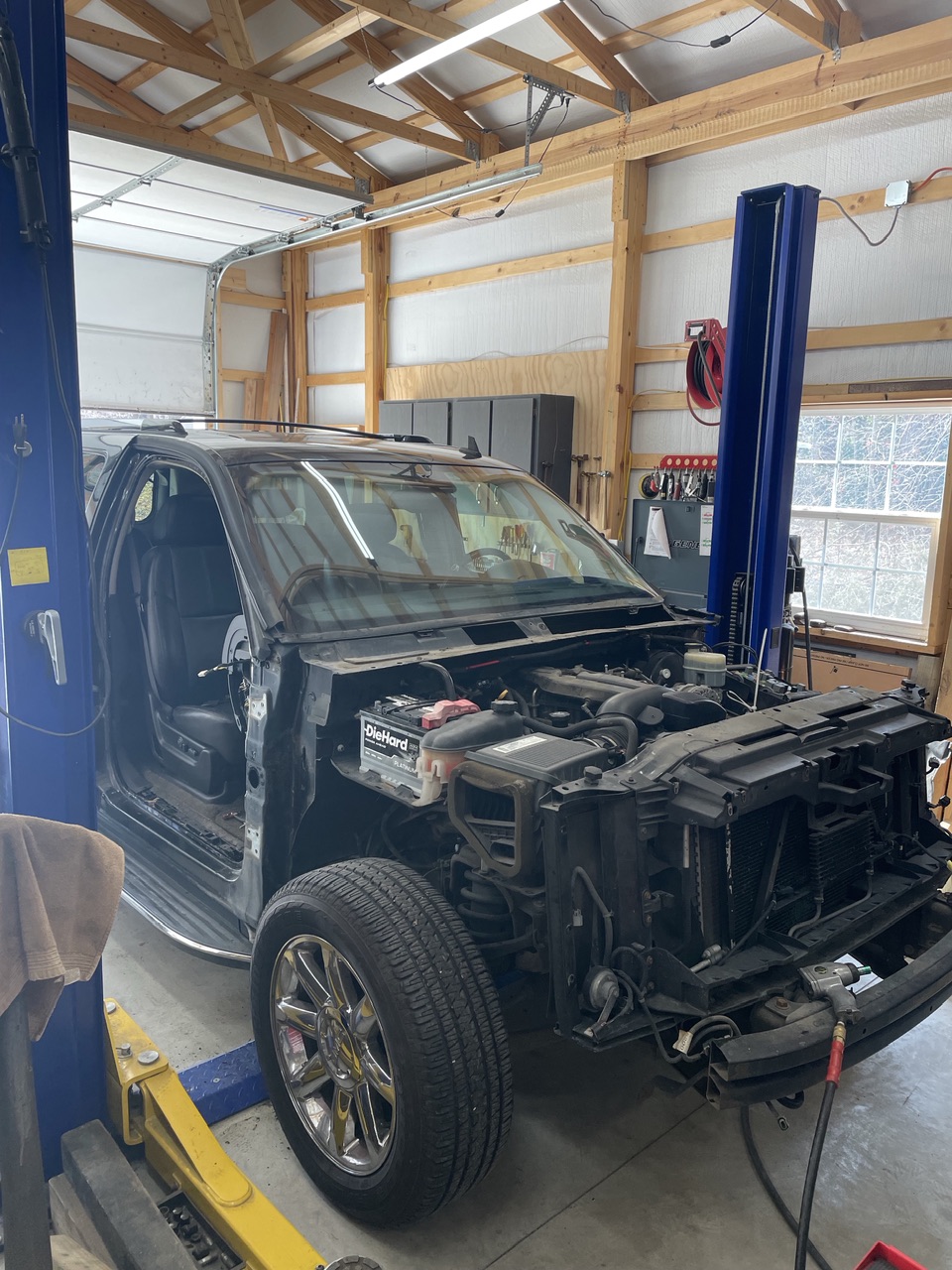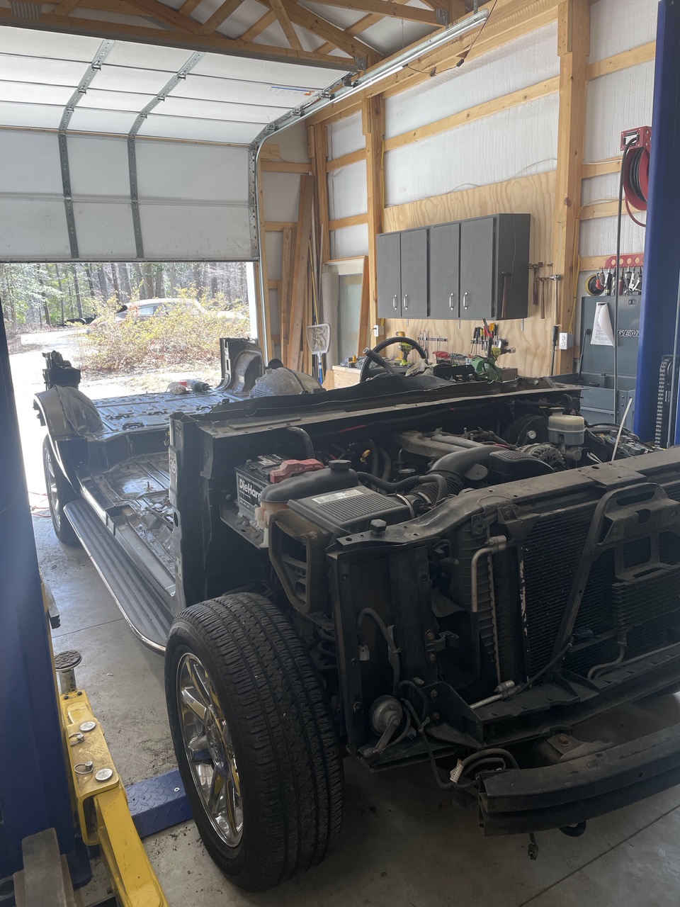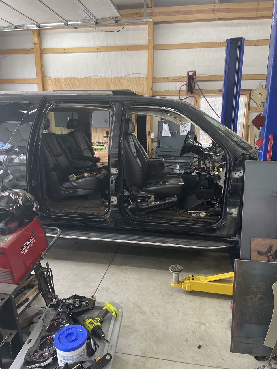 I picked up the “donor” for this project. It’s a 2008 GMC Yukon Denali. It’s got a good drivetrain, with a 6.2 non-DOD engine and AWD transfer case. I’m going to use the floor pan and firewall from the Yukon and graft the Cadillac body onto it. The Yukon is in decent shape and I drove it quite a bit until it’s 30 day temp tag expired.