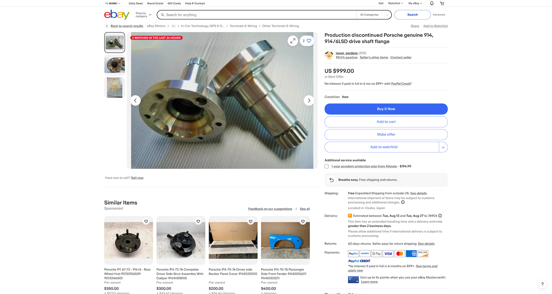 The ad reads like these were once made by Porsche, right? I’ve never seen a Porsche stub like this. Looks aftermarket to me. Maybe I’m missing something since I’m not looking at the actual ebay description.