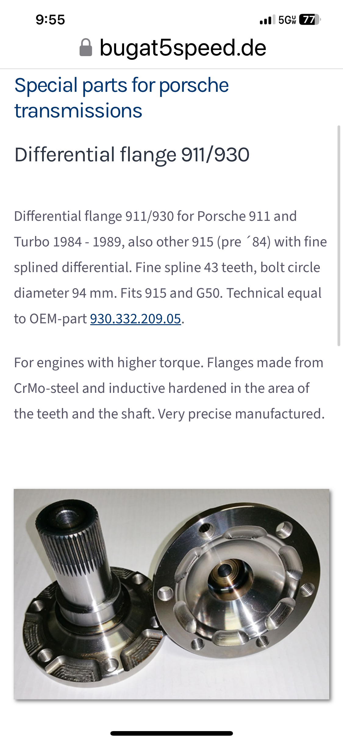 aftermarket product, original box… original flanges feature at least a part number besides the fact that these are typically made from cast iron that have been turned to spec… br benno (IMG:style_emoticons/default/agree.gif) I think CMS or someone similar made them. We bought a shops inventory of air cooled parts. There were many used parts taken out of cars and put in the original Porsche box of the replacement part. We did get a lot of nos parts in original boxes (nos 928 4 valve heads) but the majority of the parts were the used part, placed into the Porsche box of the new part and placed back on the parts shelf. It did make it easier to identify the part but sometimes disappointing that it was used. I’ve also never heard of a stub that’s specific to an lsd. I’ll have to ask the higher powers on that one. |