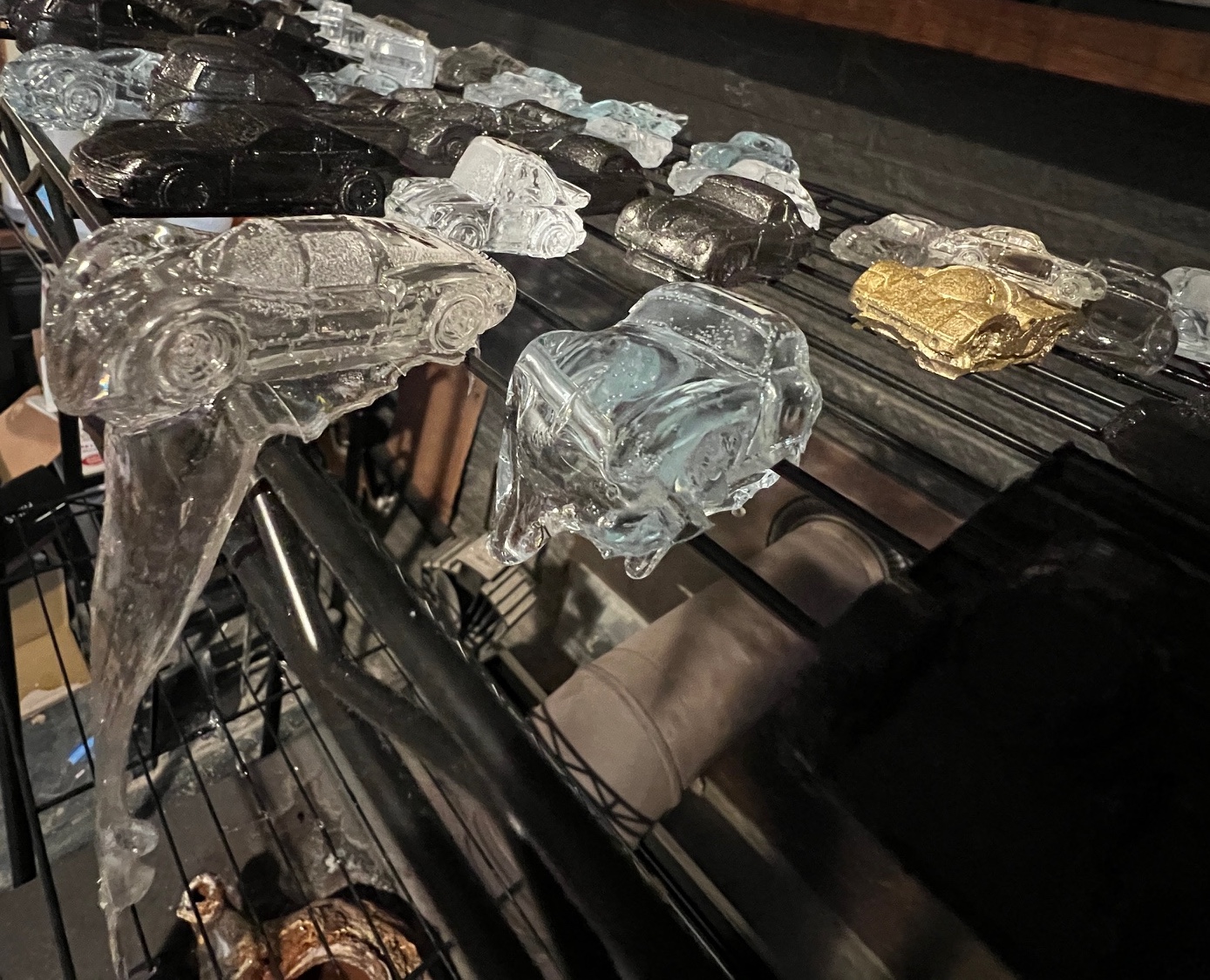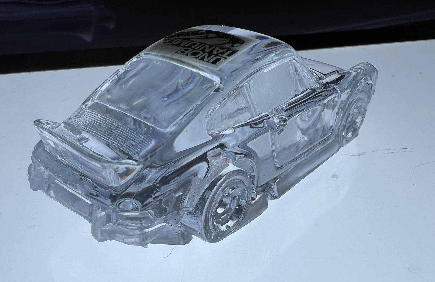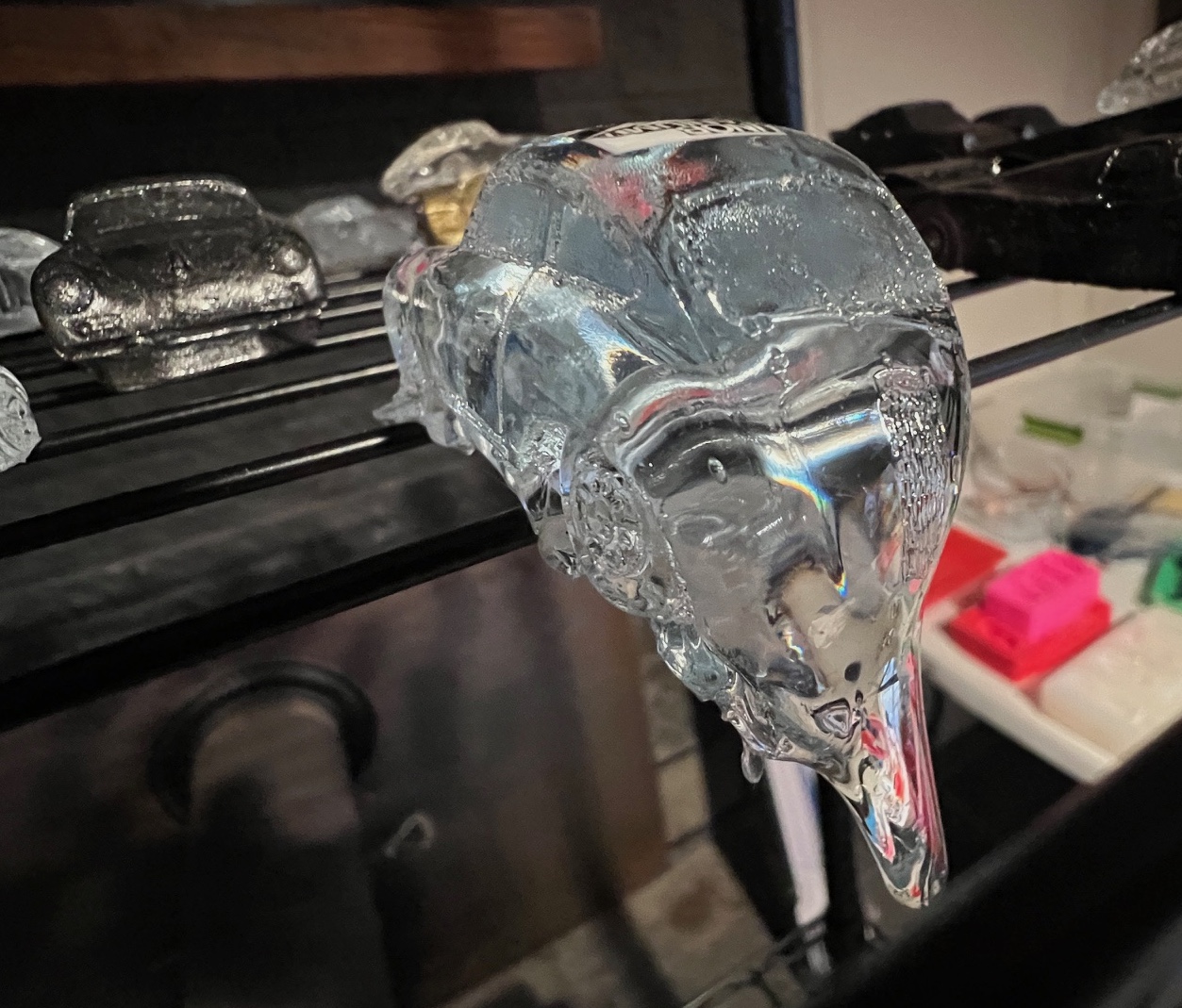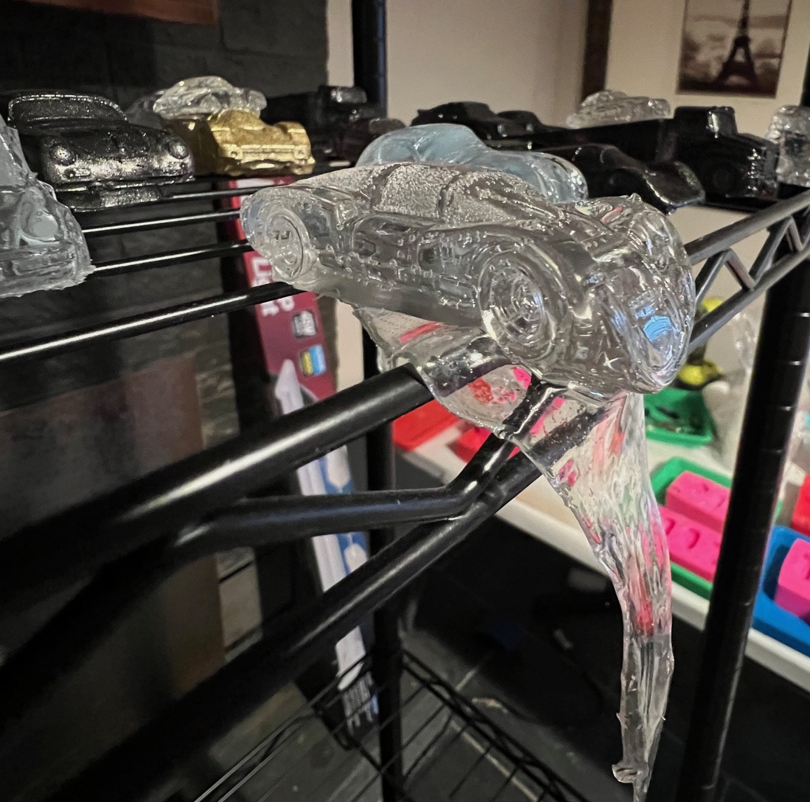 I always wondered what would happen if the cars weren't allowed to cure in the mold long enough. I tried a new resin with a longer cure time so pulled these out too soon and left them on the rack, I came back to a Porsche Dali sculpture!