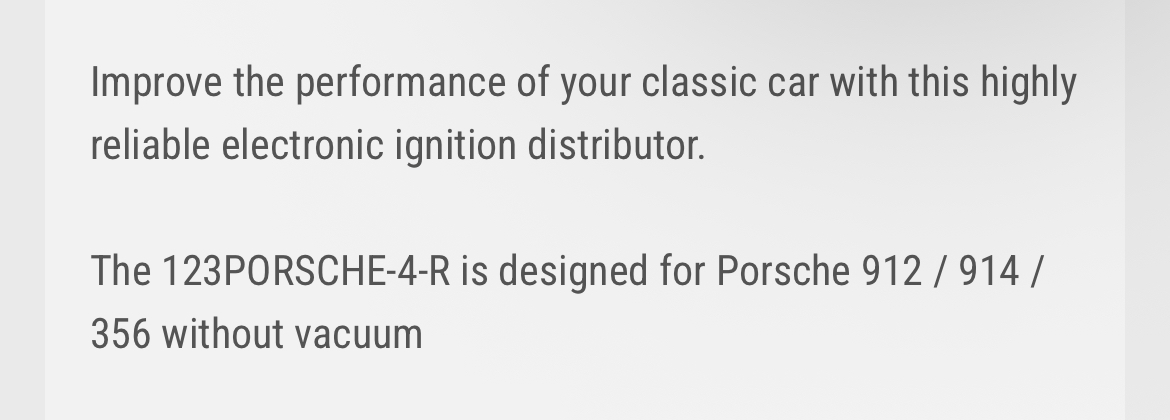 And while I'm asking all these questions, does anyone know what DEGREES NEGATIVE VACUUM !!!!! is and if I need one of those settings or not - it was set on one so I assume I do but idk. " DEGREES NEGATIVE VACUUM !!!!! " Is their way of saying vacuum retard. Stock injected 914s are all setup this way , it is used to bring down engine speed at idle. Also gives faster response off idle as stepping on the gas results in immediate increase in advance regardless of RPM. |