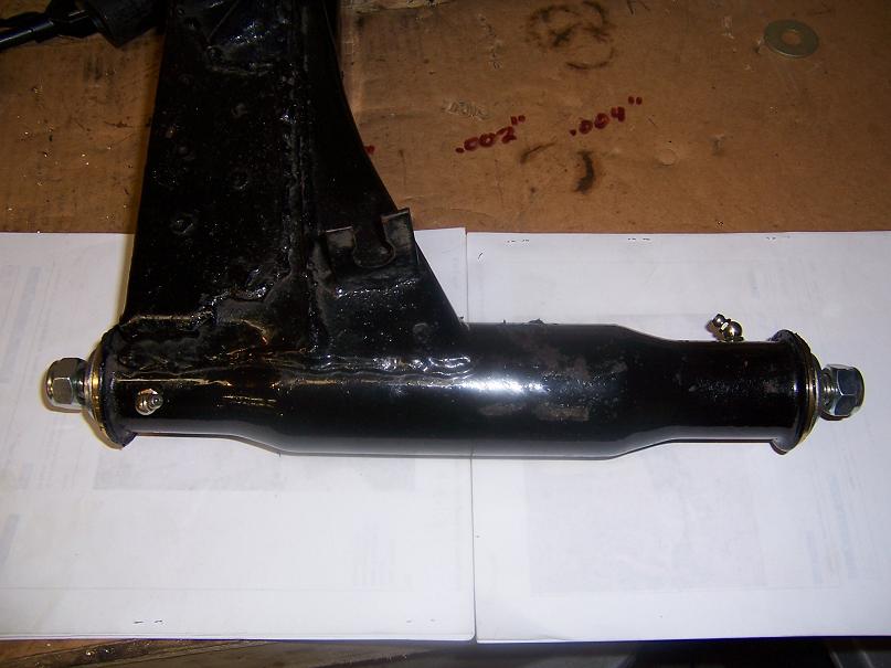 ![]() After fitting up the bushings I needed a .004" shim on one end and no shim on the other. I pulled them into place with a threaded rod+big washer. ![]() Here is the completed control arm with grease fittings. I used a generous coating of waterproof high pressure boat trailer wheel grease during installation.The paint on this control arm is POR-15 I put on there in 1997. Held up great and is still shiny. ![]() |