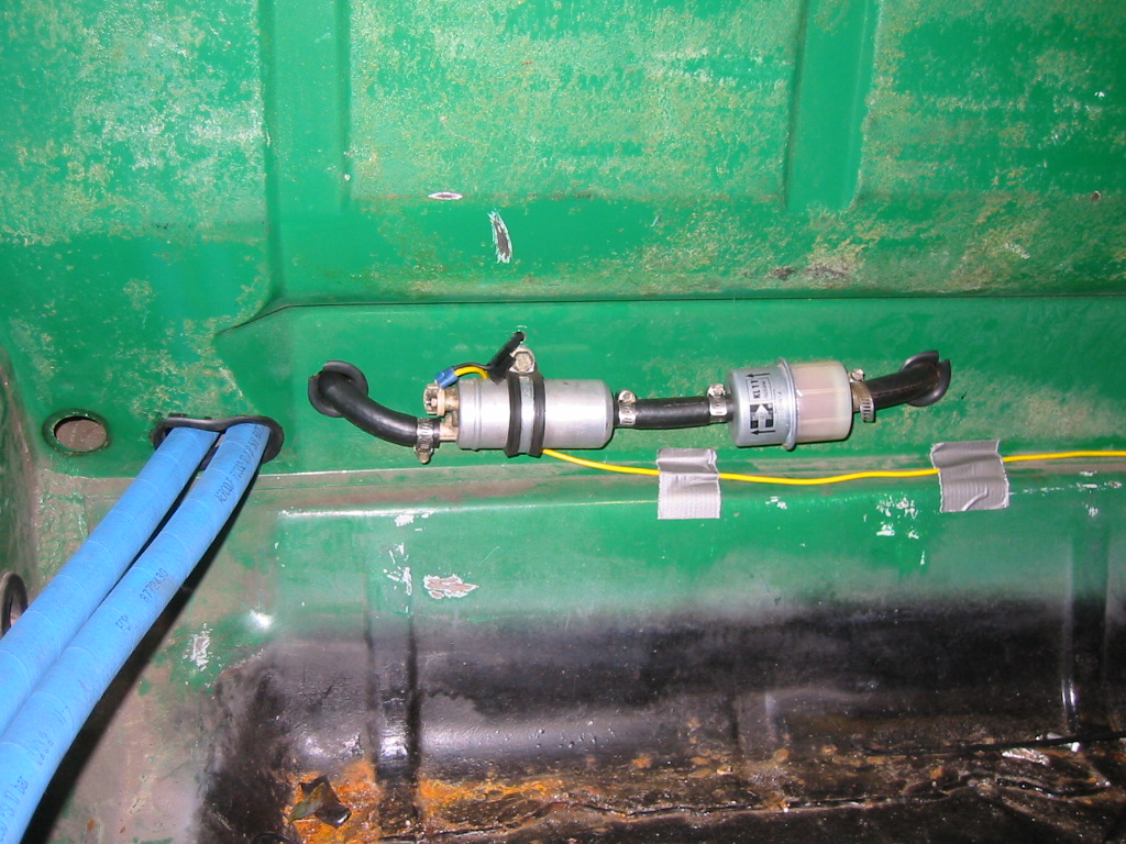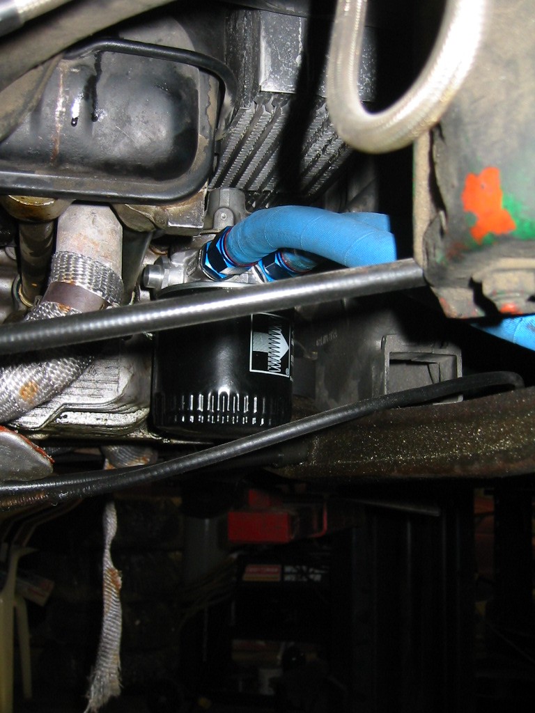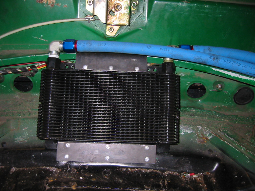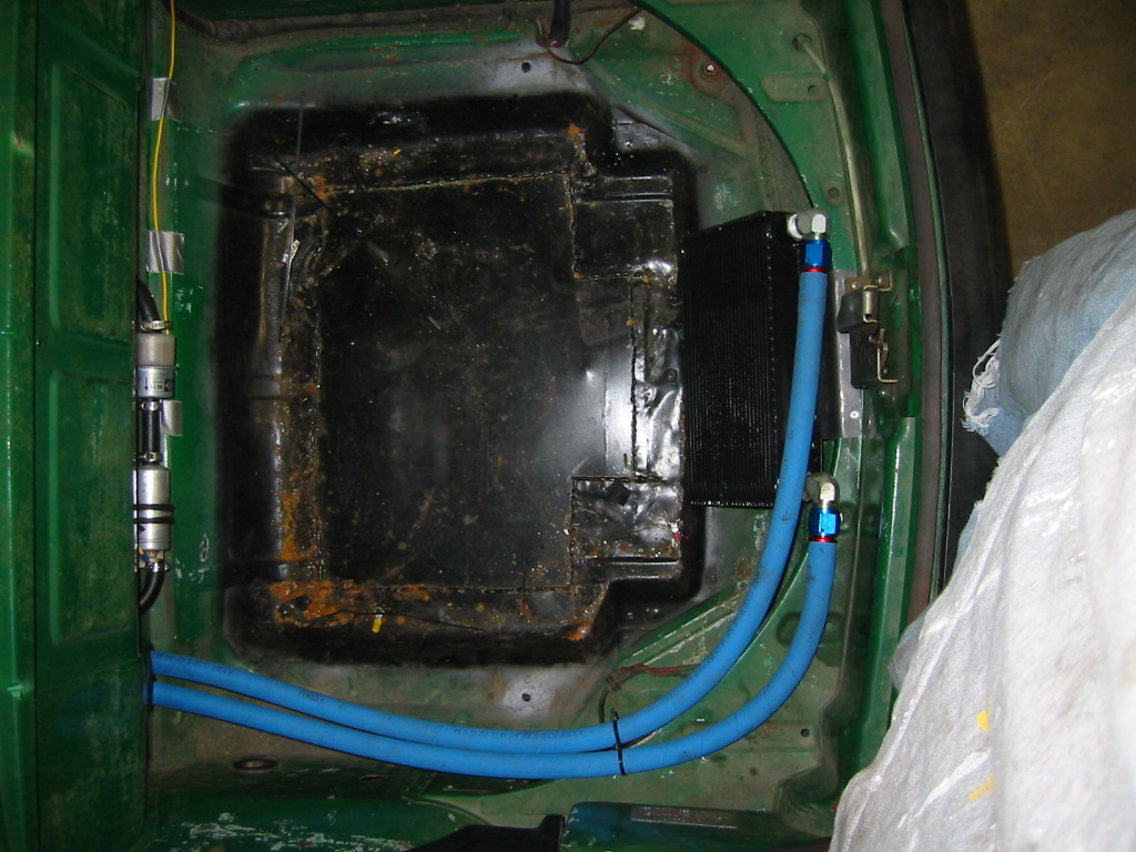 oil cooler 8 - also notice relocated fuel pump w/ pre-filter and getto wiring...