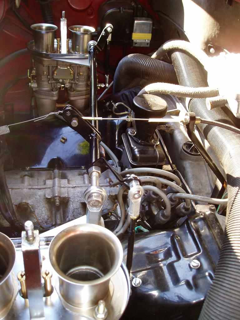 (IMG:http://www.914world.com/bbs2/uploads/post-4238-1208061514.jpg) it is a small piece of 1/8 inch steel with 2 holes drilled in it, and bent at an angle. (IMG:http://www.914world.com/bbs2/uploads/post-4238-1208061157.jpg) Here is how it runs to the linkage. Simple and strong. The cable should not have to make any sharp bends to get to the engine from the firewall, unlike some of the other attachments I have seen. The short piece of metal does not allow much (if any) flex, and should not provide as much mechanical advantage against the case (causing the case to break). Zach |