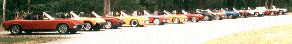 1995 1st Mid-West Renegade Festival at Lake Ozark Missouri by Rusty Payne The Porsche 914 Club had its first Mid-West Renegade Festival at Lake Ozark, Missouri the weekend of September 15th. There were a total of 16 cars, and 34 people, not too bad for a first time! 914ers came from nine different states to attend. Club President Alex Buller and Barbara LaFargue even drove their "sixer" all the way from California for this first ever event. Somebody upstairs must like us 914ers, as there was only a very light rain on Friday night, and the conditions for the remainder of the event and drive home was perfect 914 weather (tops off - mid 70's). Pre-event activities consisted of clean, polish, and "Advanced Porschemechanics". Event organizer Perry Kiehl got his "6" conversion completed only hours prior to departure, and was resigned to trailer the car to the event in a poor running condition. Thursday morning found Perry tinkering with rear brakes. Rich Johnson and Perry (mostly Rich) spent the better part of Thursday afternoon tweaking the mechanical injection system to a much better running state. Charles and Linda Kate Burks drove two 914's, and Linda Kate's car didn't run too well the last couple hundred miles, and was trouble shot by Alex and Charles. Working on the cars in one form or another was a sub plot of this event. David Wegeng was up until 4:00 am Friday morning reassembling his car. David's car, a major resto/rusto project, was painted Thursday morning prior to the event, and back in David's garage at 4:00 that afternoon. David got a 2nd in the concours, showing that hard work and determination does pay off! Brad Mayeur also helped David trouble shoot his injection system. Saturday afternoon during the parade, the shift rod (in the tunnel) on Alex's "6" broke. Harry Price and Jim Blakewell took to the car like a LeMans pit crew, and removed the shift rod (which broke from 25 jahren of wear). Local 914er Cody Corbett drove Alex to a welding shop that repaired the rod. All of this happened late in the afternoon, and the welding shop stayed open past 5:00 to help us out. The Price/Blakewell pit crew had the car shifting again in no time. It was a miracle that the thing it broke when it did, and didn't wait till Alex and Barbara were halfway to California. Friday night there was an informal reception which allowed everyone to get acquainted and talk 914. Saturday was early morning wash, shine and polish for many. The first scheduled event was a Poker Run to a local State Park where the concours and picnic lunch would take place. Arrival at the park saw very judicious parking instructions by our club President. Everyone had time to snap photos and judge the cars, although it was difficult to get everyone clear of those nice shiny 914's. Rich Johnson played videographer for the event and interviewed every car owner, which required the owners to vocally reproduce their favorite 914 sound. A picnic lunch of subs, chips, and popular beverages was enjoyed by all. The participants then cruised back to the motel, for the tech session and some free time. Brad Mayeur, Rich Johnson, Glenn Stazak and Charles Burks headed up the "round table" tech session. This was an informal format, and allowed all participants an opportunity to exchange information on the nuts, bolts, and skinned knuckle aspect of 914 repairs, restoration and preservation. The parade through town took place later that afternoon, only after all the cars went topless. For many it was the greatest concentration of 914's they'd ever seen. The parade went smoothly (except for Alex's shifter), and we observed one of our mid-engined cousins, a Fiero Countach replica on the parade route. The parade route took the group through the tourist section of Lake Ozark, over the very narrow Bagnell Dam, and back to the motel via a scenic section of Hwy 54. A few hours of free time was scheduled before the Banquet. The Banquet was yet another chance to socialize, and the food was exceptional. The staff at the Lamplighter Howard Johnson really did a fine job, and helped make the event a success. After the meal President Alex gave a speech, as did Perry, then the concours awards were presented, followed by the door prizes, which were donated by GPR and High Performance House. David Wegeng made an impromptu appreciation speech thanking Perry for organizing the event. GPR also gave each owner a $25 coupon good for purchases of $100 or more. Thanks again to Dave at GPR, and Rich at High Performance House. Lets all trade with those that support our Club! The last order of business was an open discussion of the event, and what everyone would like to change or do differently for next year. A few observations from the event were: Jim Blakewell's orange 2.8 "6" conversion was without a doubt the fastest 914 present. David Wegeng had the most difficult restoration, as well as having got the car together with least time to spare. Malaga red and shades of red or maroon was the most popular color (6 out of 15 cars). Andy McFarland's "6" may have been the most coveted car present. At 16 Cody Corbett was the youngest 914er present. David Tomasix from Grand Rapids, MI had the longest drive to the event (besides Alex and Barbara). There were several stock 914's that were wonderfully preserved, a miracle in this land of snow and salt. Several were optimistic that Perry's slick wide body will someday run as good as it looks. Alex and Barbara were shocked to see so many people handing out their keys for test drives. It seems the mid-westerners are proud of the way their cars drive, and like to show off that aspect to other enthusiasts. The most important observation of all was that EVERYONE HAD A GREAT TIME! This first time event was a major success for the Club, the cars, and the people that came. The Club got a good boost in membership. The cars got detailed, tuned, tweaked, repaired, or reassembled in some cases. The people however, got the best bonus of all, 