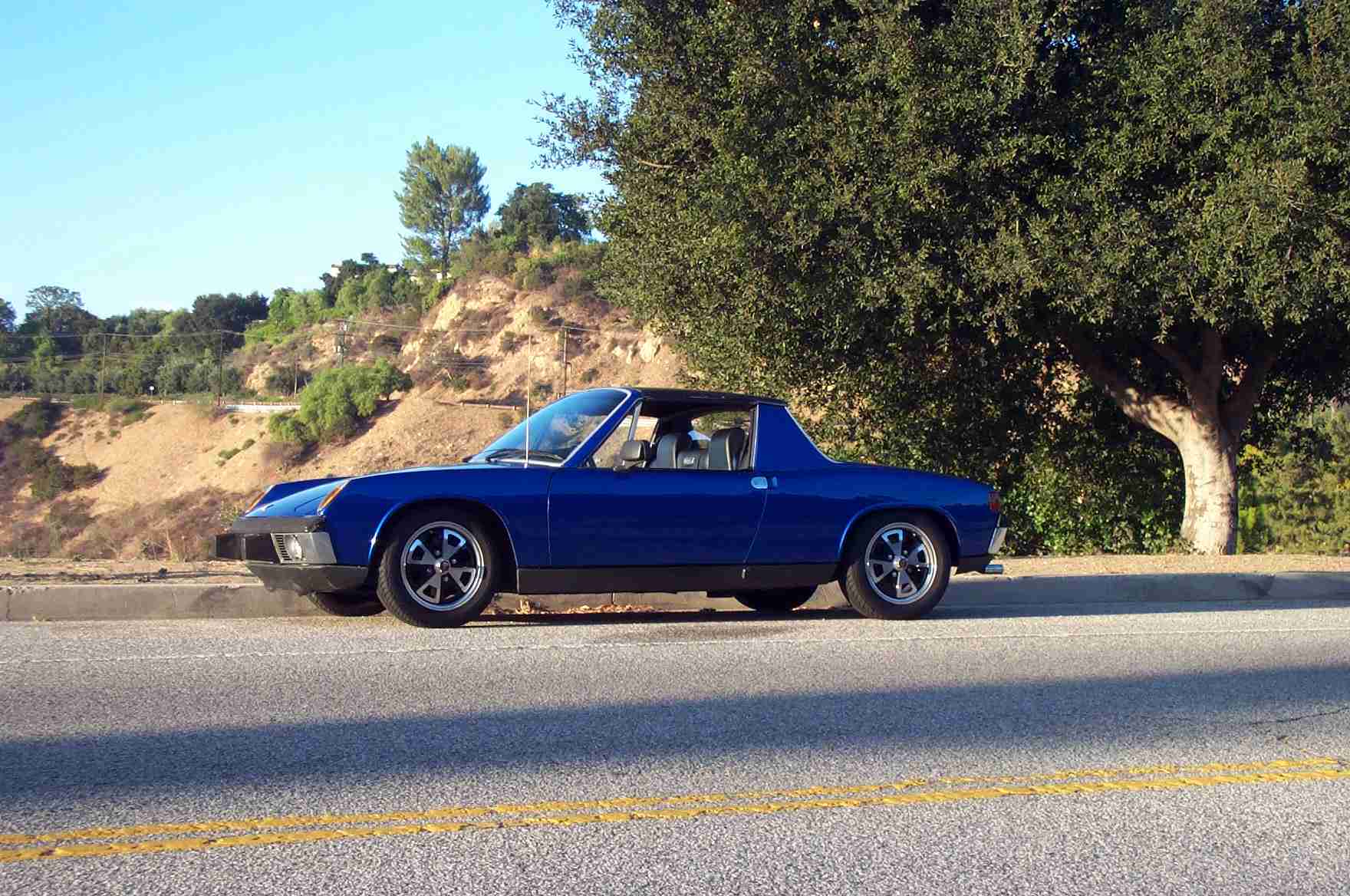 Great twisties and a number of scenic turnouts. It's like Mulholland drive was designed to be driven in a 914. Overlooking the Hollywood Bowl Downtown LA. If you look closely, in the center of this picture you can see the Capital Records building (round). My car (including all five forward gears and a reverse gear. Dr. Evil - I am worthy (IMG:style_emoticons/default/laugh.gif)) The road was pretty empty, so I may have exceeded the 25MPH limit by 1/2 a mile or so on occasion... (IMG:style_emoticons/default/rolleyes.gif) |