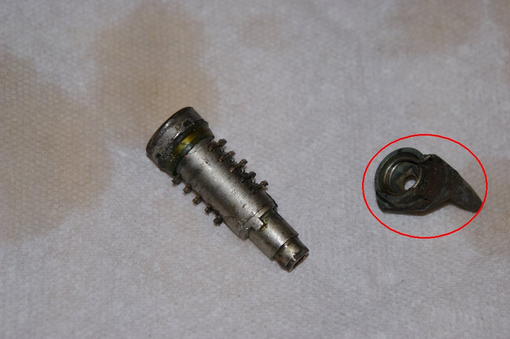 When you have it apart, as in the photo above where the piece with the actuator arm is off (the one circled in red), you'll notice there is a square machined out of the inside, and on the end of the tumbler is a corresponding square that sticks out and fits neatly inside it. On my lock, part of the square on the end of the tumbler had broken off, so it had some grip to turn right, but not enough to move the actuator left. I ended up removing what was left on the end of the tumblre, fabricating a small metal sware to take it's place, and supergluing the whole mess together with a new screw and pressure washer. It has worked great ever since...but I do unlock the door gingerly! (IMG:style_emoticons/default/biggrin.gif) |