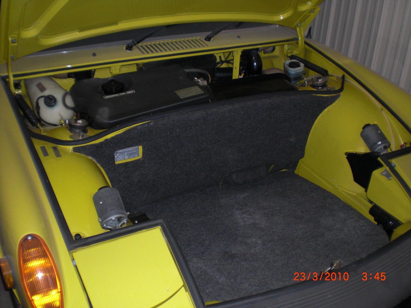 Darn nice 914! Not a lover of the late cars, but this is sweet! Who cares about a little dust! The side bumpers are a cali thing & easily removed. Nice 15K car - nuff said. Pat My 73 is a Sacto car with the side mouldings too.. BUT....they are rivited on mine.... maybe this has the sticky back ones..?? ALL of the smog items intact is Kooooool!! A >Pure< Cali car all the way..!! |