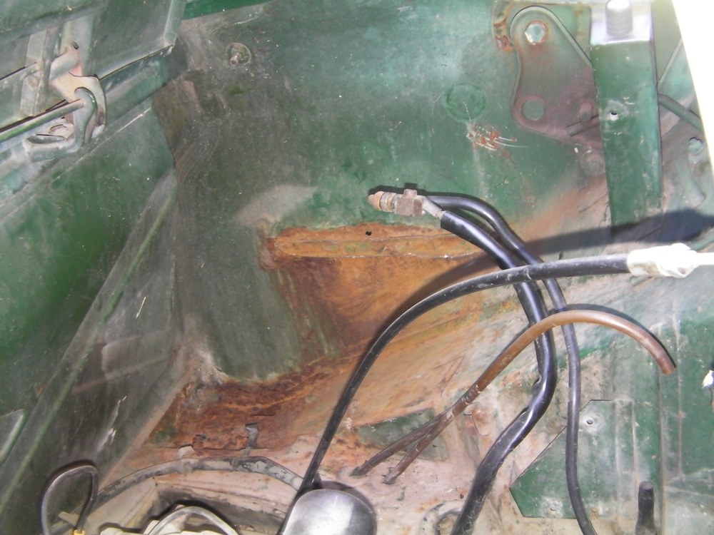 Trent, I pulled out my dashtop tonight to send out for restoration. I could have used your help but wait! We don't know you yet!!! Catch my drift? I have no idea how to take out my dash! Yes, I catch your drift, I'll talk to my dad tonight or tomorrow because today is his birthday. All I have really done on my 914, so far, is take out the seats and carpet and rip up some of the tar that has cracked and let water in to rust. I got 1 more weekend to do that and then I'm planning to take it in the garage and drop the engine&trans and do a complete assessment and rebuild. Oh, I got a question though, Is it bad if the corner (where the battery tray is) is rusted through? I'm afraid that even if I removed the rust and patch over it with fiberglass (as I have no skills in welding) that the corner will still be weak. Here is a pic of the corner (The battery tray is no longer there) |