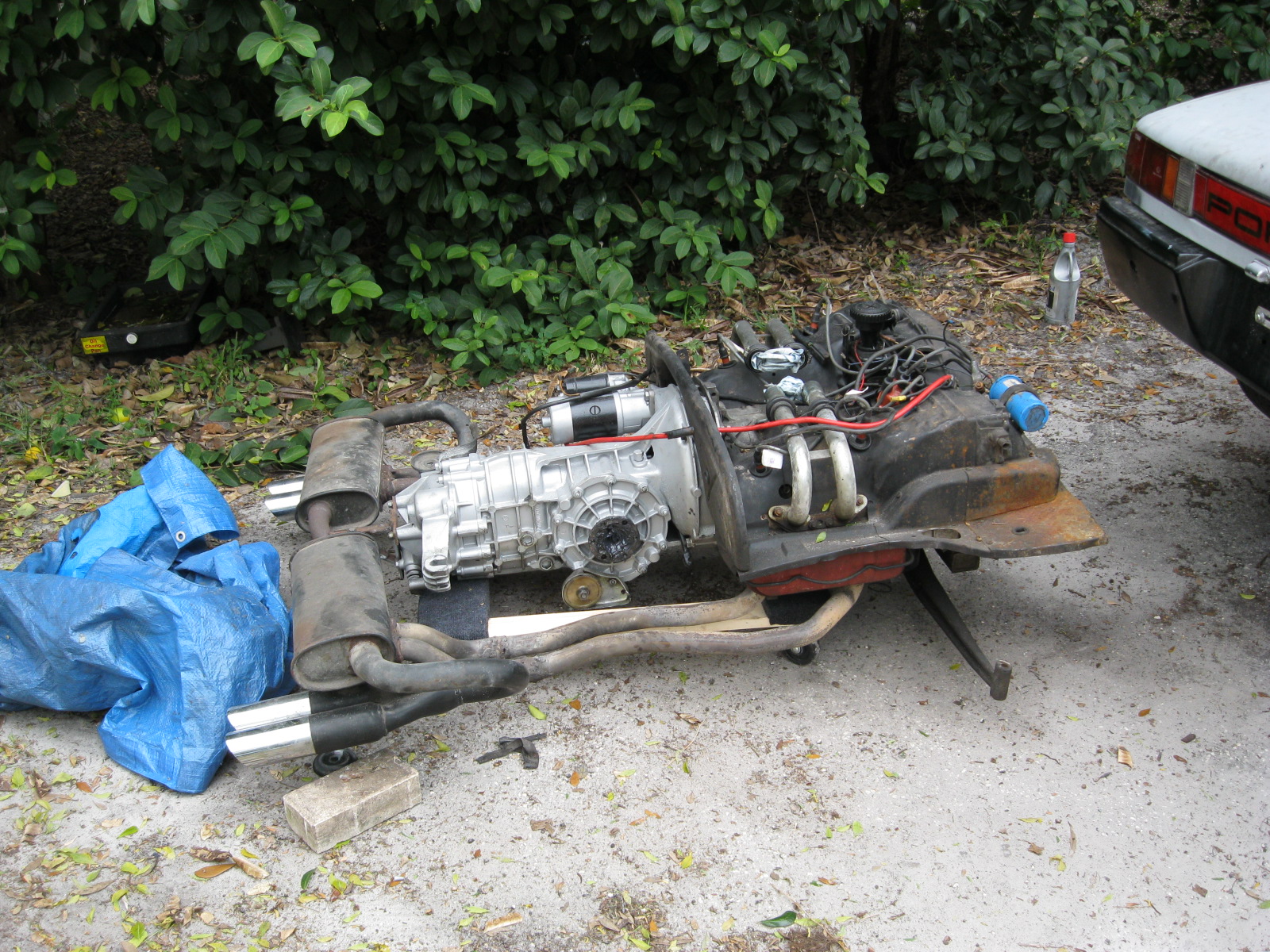 A great day! After dropping the transmission when I first got the car and putting it back in just to see if it would go anywhere (it did!) I dropped the whole thing together several weeks later. Let me just say, no matter what I have to do to this engine/tranny in the future, they're coming out together. So much easier. The fun part was figuring out where to jack the thing up from. There was nothing left of the jack point, long, or bulkhead. I can't remember what I did now to be honest.